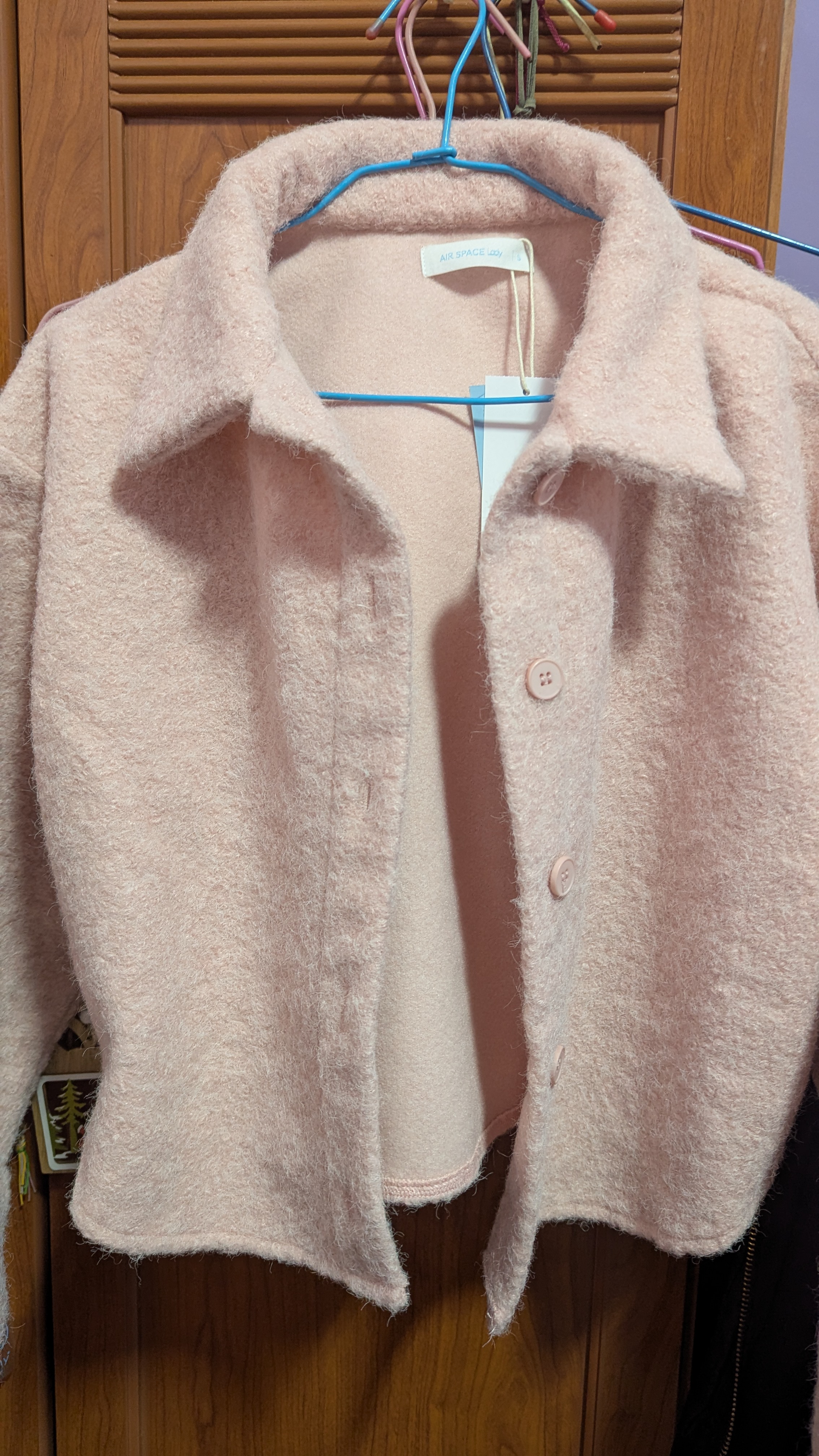 Soft Fuzzy Cropped Button Up Jacket with Classic Collar Design