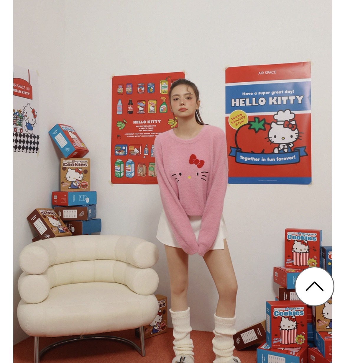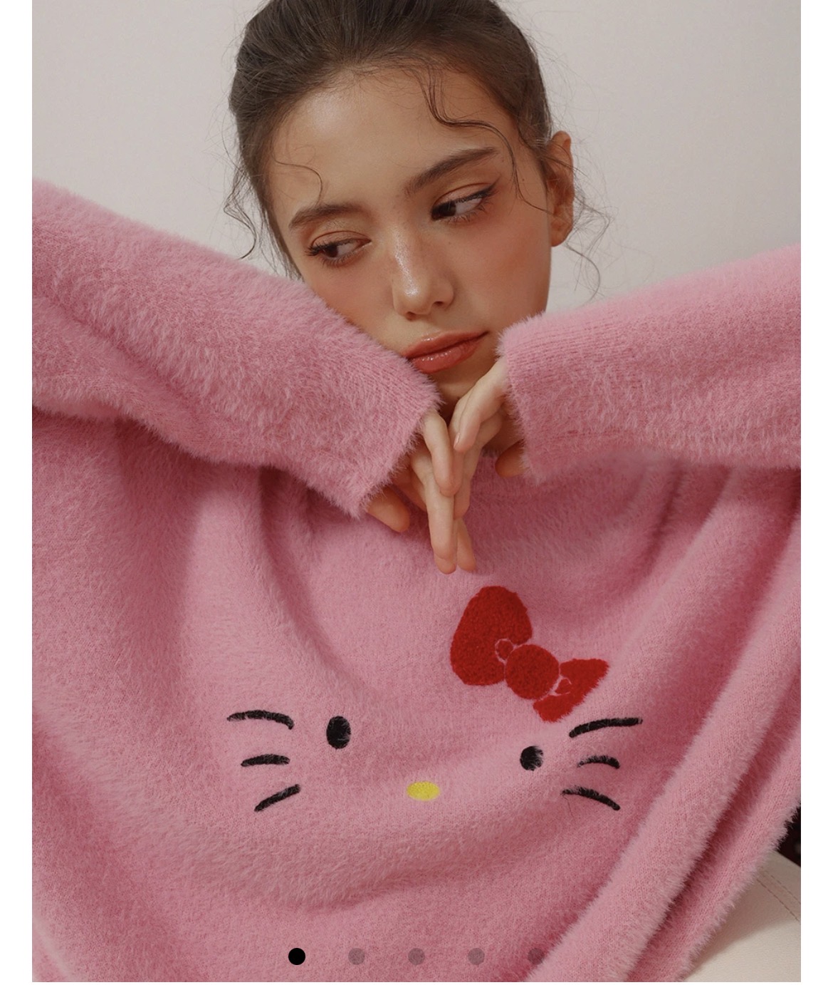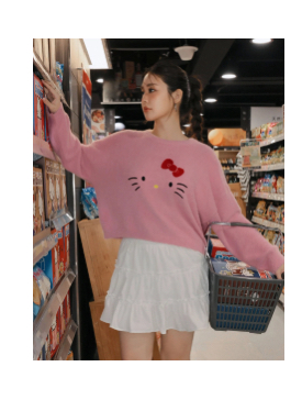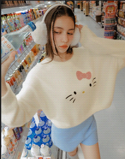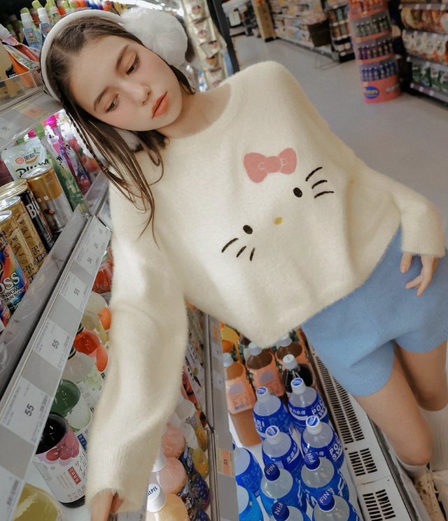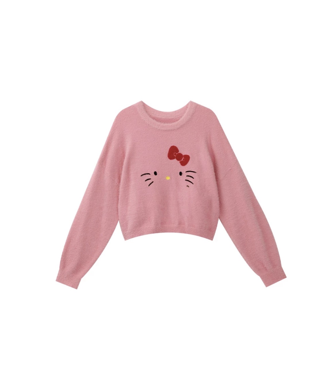 【Hello Kitty Collaboration】Plush Knit Crop Sweater with Kitty Motif
