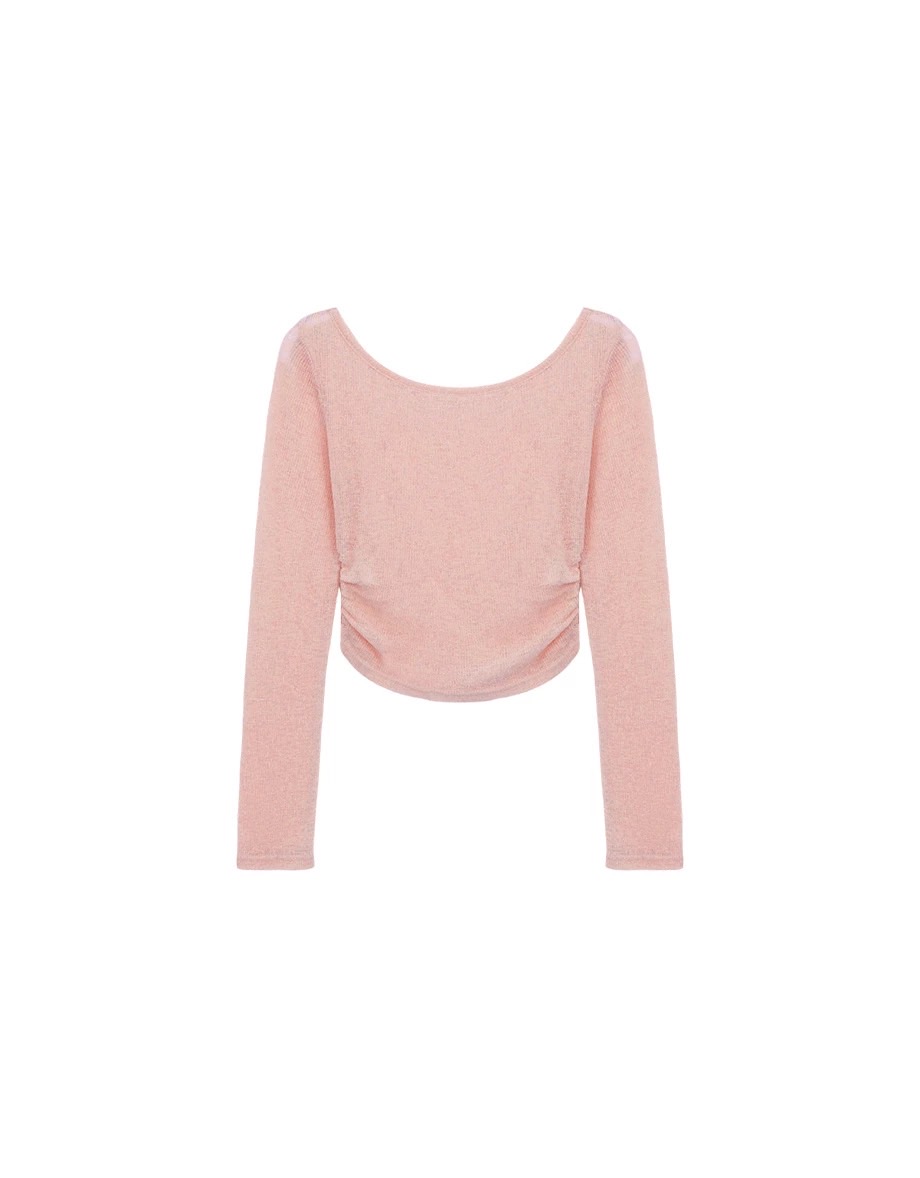 Side Ruched Sheer Ribbed Knit Long Sleeve Layering Top