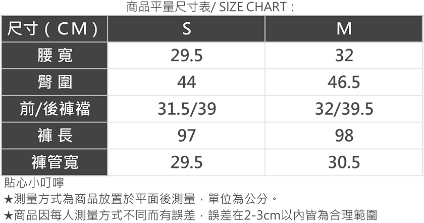 不確定自己的尺寸嗎?別擔心,我們幫你搞定。你可以參考下方商品評量尺寸表或是身材測量方式找到最適合你的尺碼,如果還有疑問也歡迎隨時聯繫我們的客服團隊。
