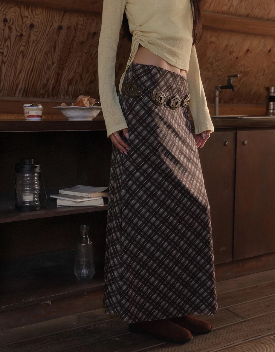 Vintage Inspired Plaid A Line Maxi Skirt