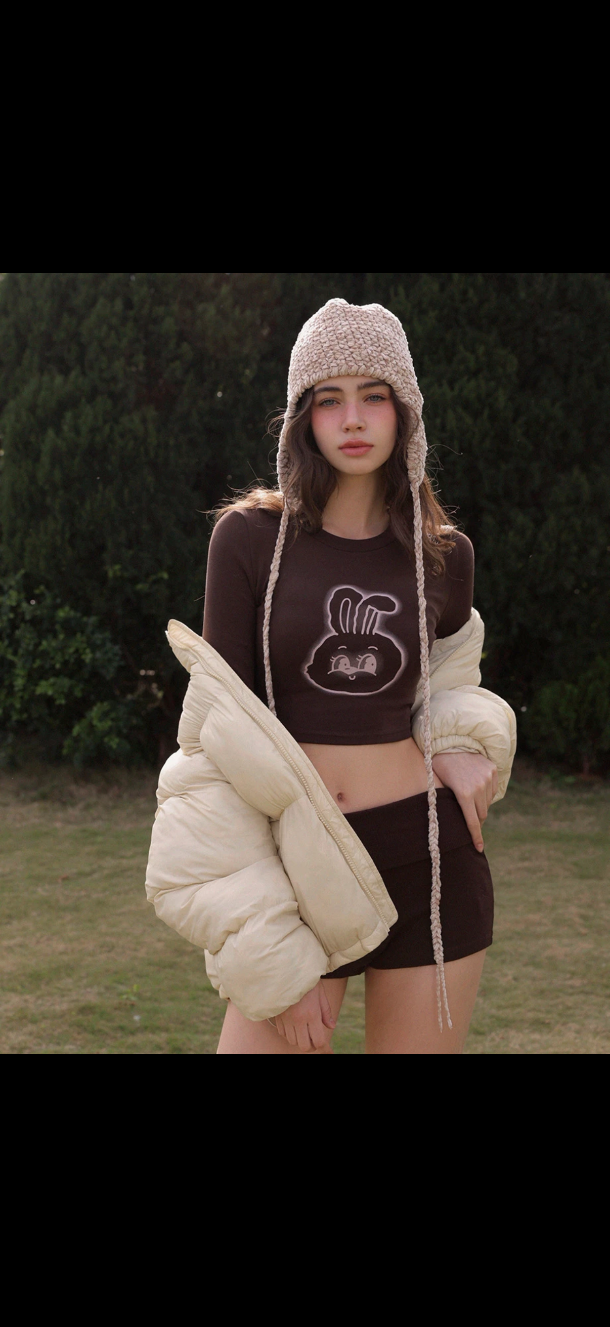 The AIR SPACE original IP “Lyra & Toby Friends” collection invites you into a colorful, comforting world of imagination, bringing playful character designs into everyday styling. Featuring Lyra the bunny as the main graphic, this cropped crew-neck tee delivers a cheerful, eye-catching look that stands out effortlessly on its own.
