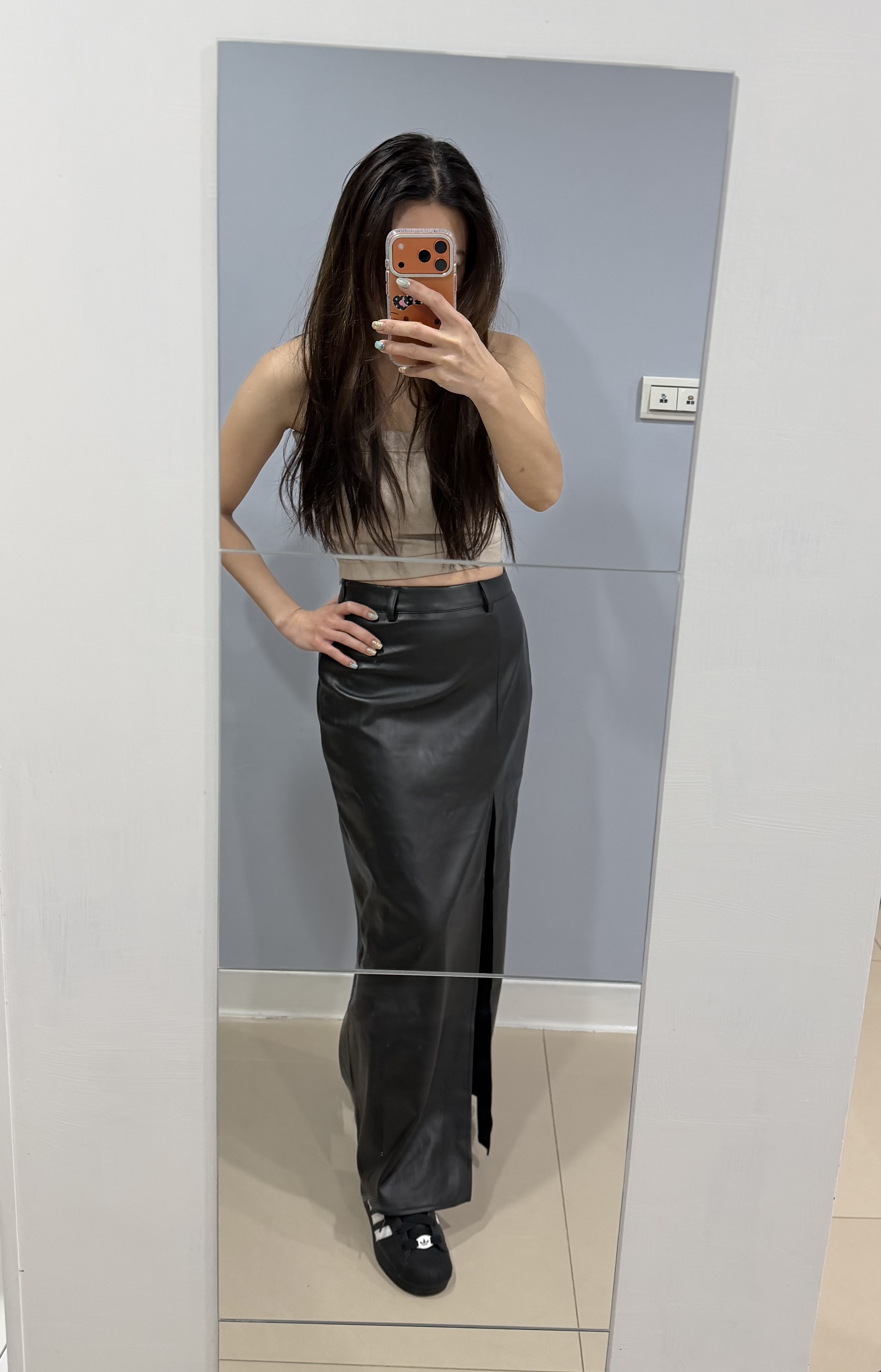 偏合身,好穿搭的皮質長裙