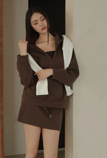 This V-neck long-sleeve hooded top features a soft brushed interior and smooth outer fabric that instantly enhances comfort while creating a relaxed, flattering drape. The V-neckline elongates the neck, and the hooded design adds a casual touch, making it ideal for daily wear or light activities.