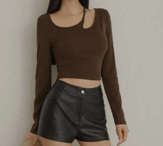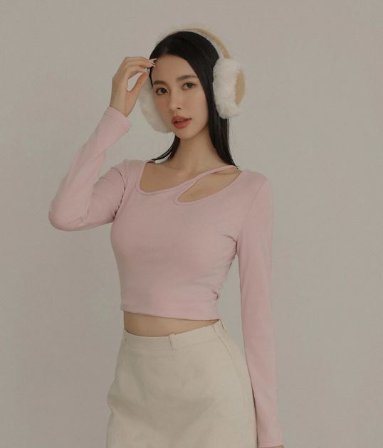 An asymmetrical cutout neckline paired with a single shoulder strap highlights the collarbone with a clean, modern edge. Crafted from softly brushed TENCEL™-blend fabric, the texture feels smooth and skin-friendly while remaining breathable and comfortable against the body. The cropped silhouette defines the waist and visually elongates the lower body, making it an easy choice to wear on its own or layered for versatile styling.