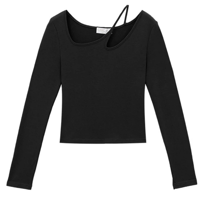 Asymmetric Cut Out Shoulder Long Sleeve Brushed Knit Top
