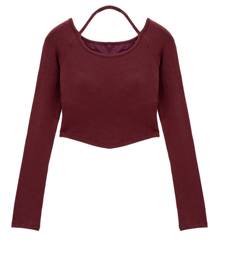 Halter Tie Long Sleeve Fitted Padded Bra Top