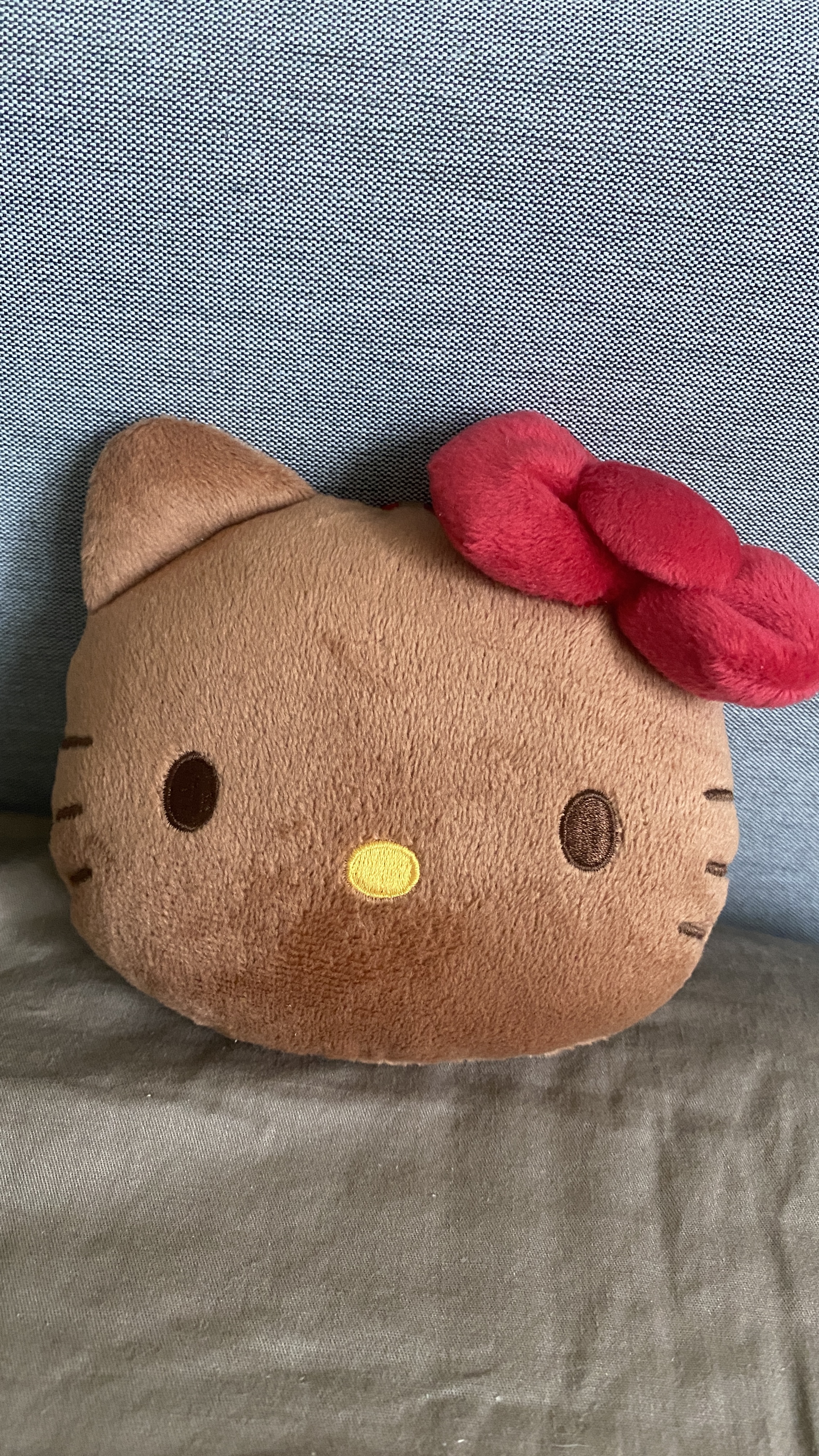 The “burnt” Kitty plush charm can be clipped onto belt loops or bags with the red heart-shaped clasp for an instant style statement. Inside the fluffy Kitty head, a reusable shopping bag is neatly tucked away for on-the-go convenience. Finished with a Kitty face print that complements the vintage caramel tone, the roomy bag handles daily errands with ease, making it a must-have accessory that balances streetwise aesthetics with practical function.