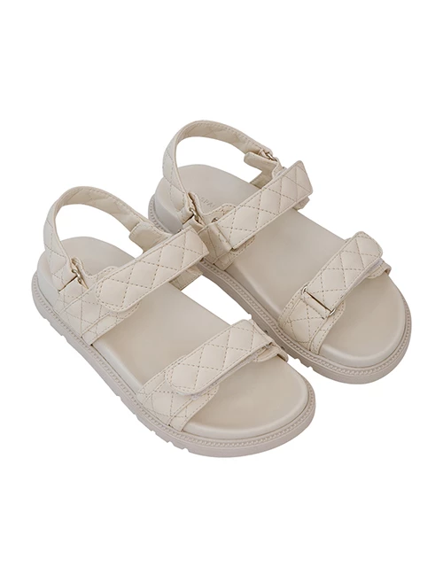 【TIFFANY】Tweed Velcro Low Heel Sandals