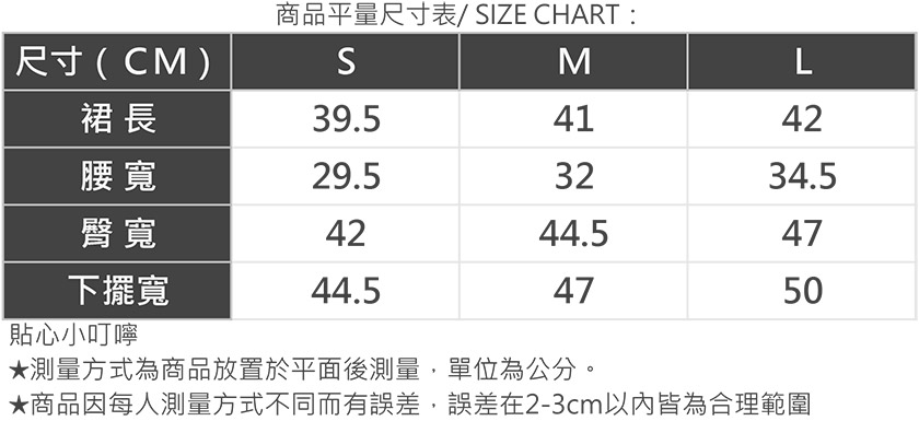 商品平量尺寸表