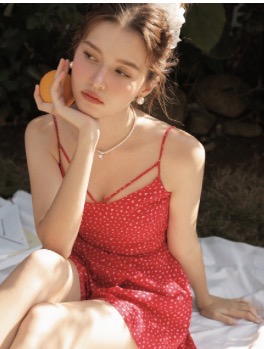 V型雙線細肩帶碎花連身短褲