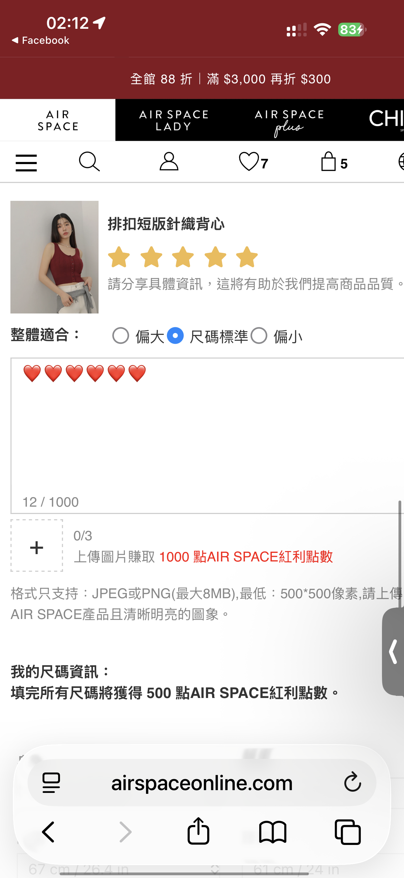 | 版型 | 貼身 | 1 | 2 | 3 | 4 | 5 | 寬鬆 |