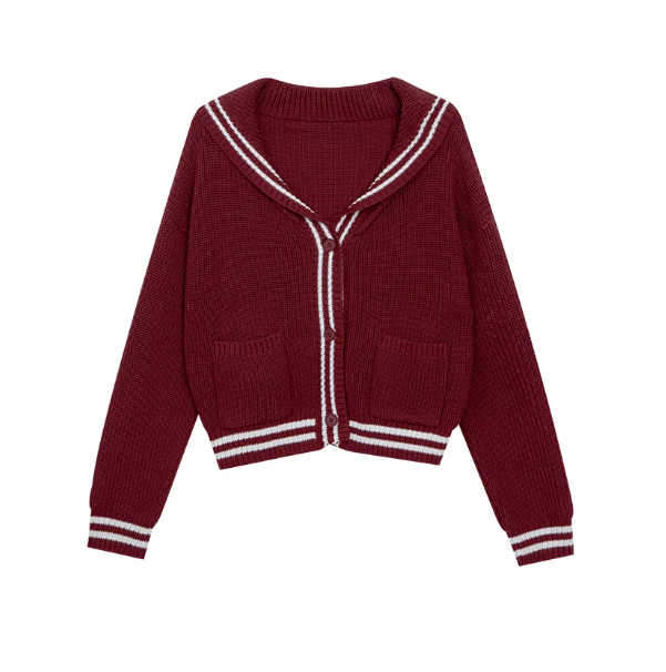 Preppy Style Knit Cardigan with Contrast Striped Sailor Collar