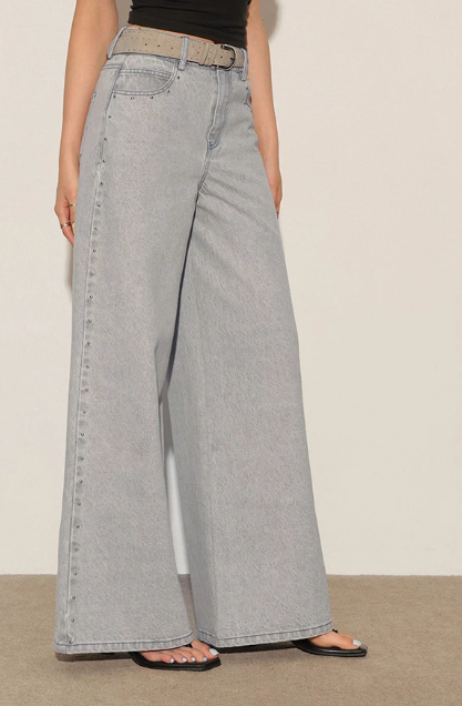 Studded Side Trim Wide Leg Jeans Denim Pants