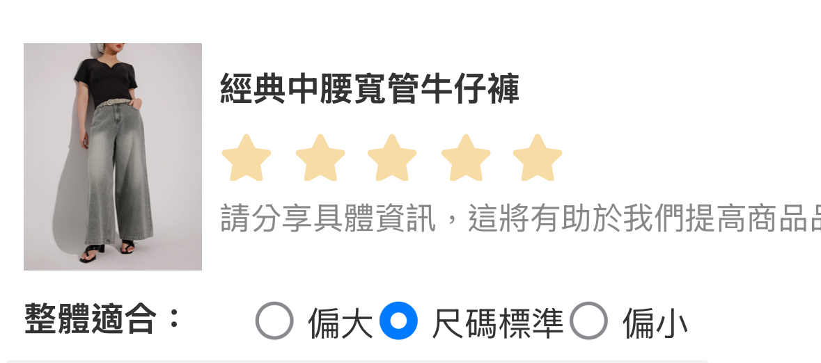 試穿後很修身,寬褲也不顯胖,好穿材質也不錯