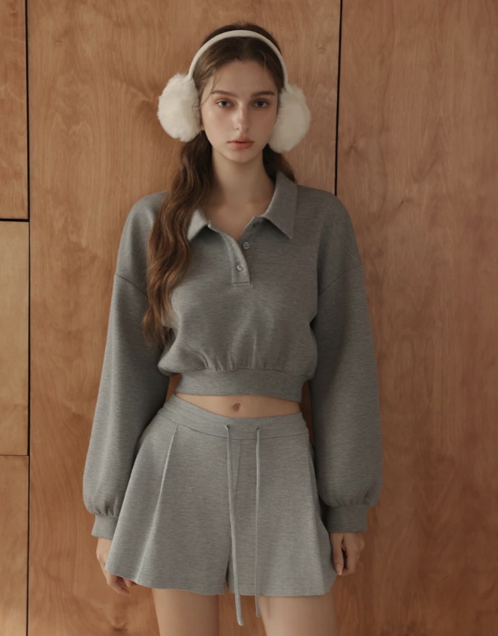 Polo Collar Long Sleeve Cropped Sweatshirt