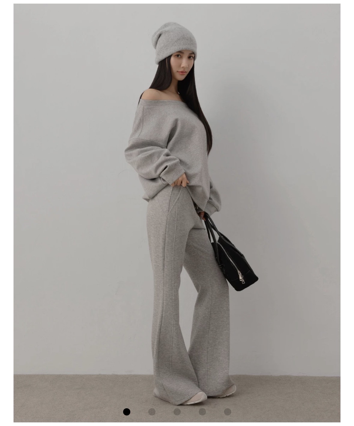 Lightweight yet warm brushed air-cotton keeps you comfortably cozy through cooler seasons. The wide round neckline offers versatile styling, worn on-shoulder, slightly off-shoulder, or as a straight neckline to highlight clean shoulder lines. Paired with a relaxed drop-shoulder fit, it creates an easy, city-chic casual look made for modern everyday wear.