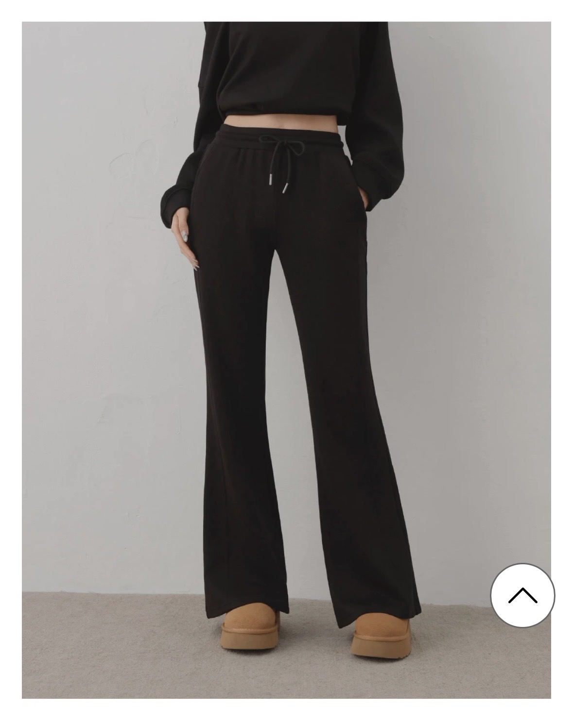 Made from brushed air-cotton, this pair locks in warmth for winter while staying light and never bulky. The mid-to-low rise waist is finished with an adjustable drawstring so you can set the fit at your most comfortable point. A subtle flare from the knee, combined with vertically guided side seams, refines the calf line and creates a slimmer, longer-looking leg silhouette.