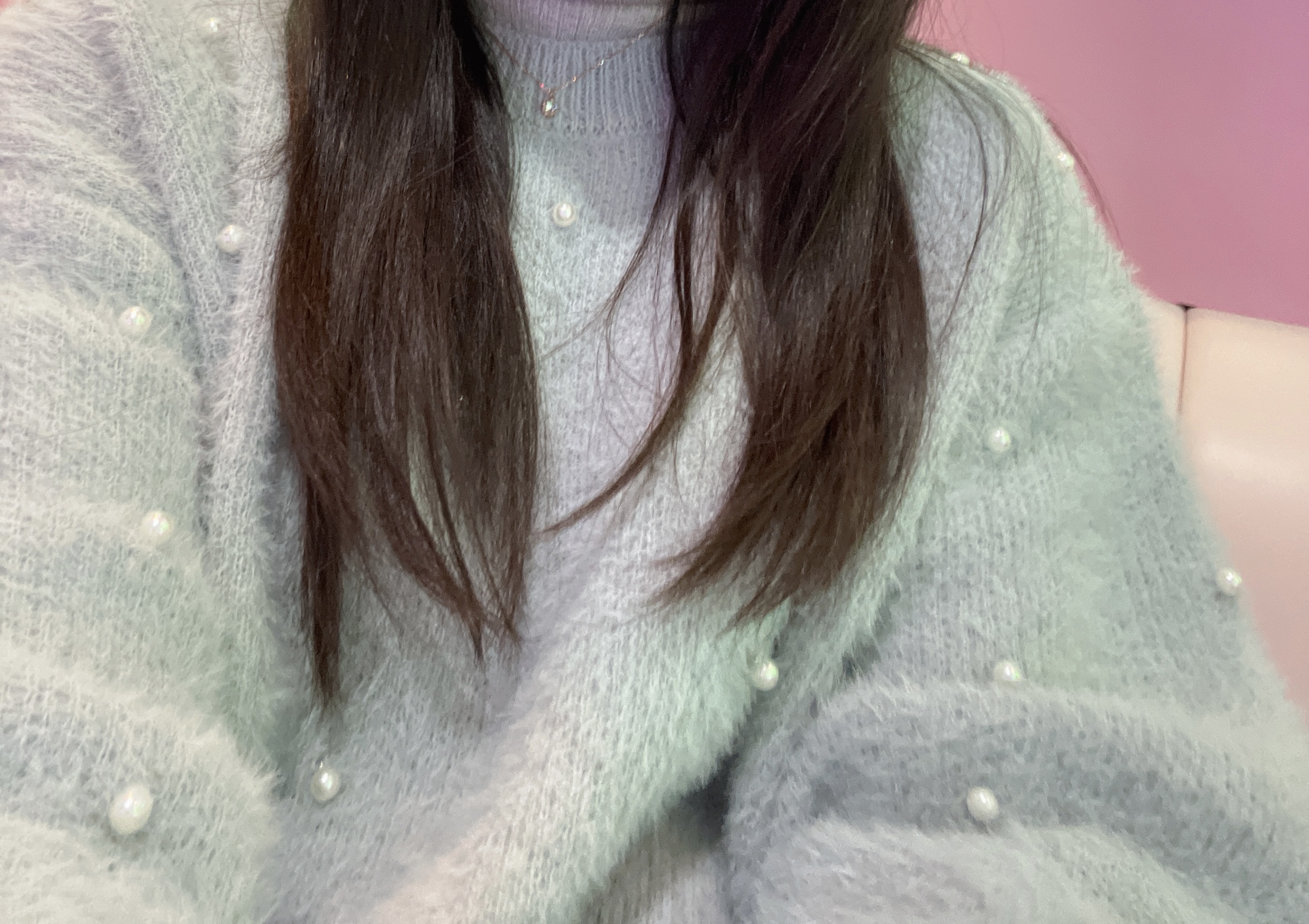 猶豫了好久,白色亮眼,但可能珍珠不明顯,灰色比較耐搭跟場合都適合,白色就是比較溫柔感