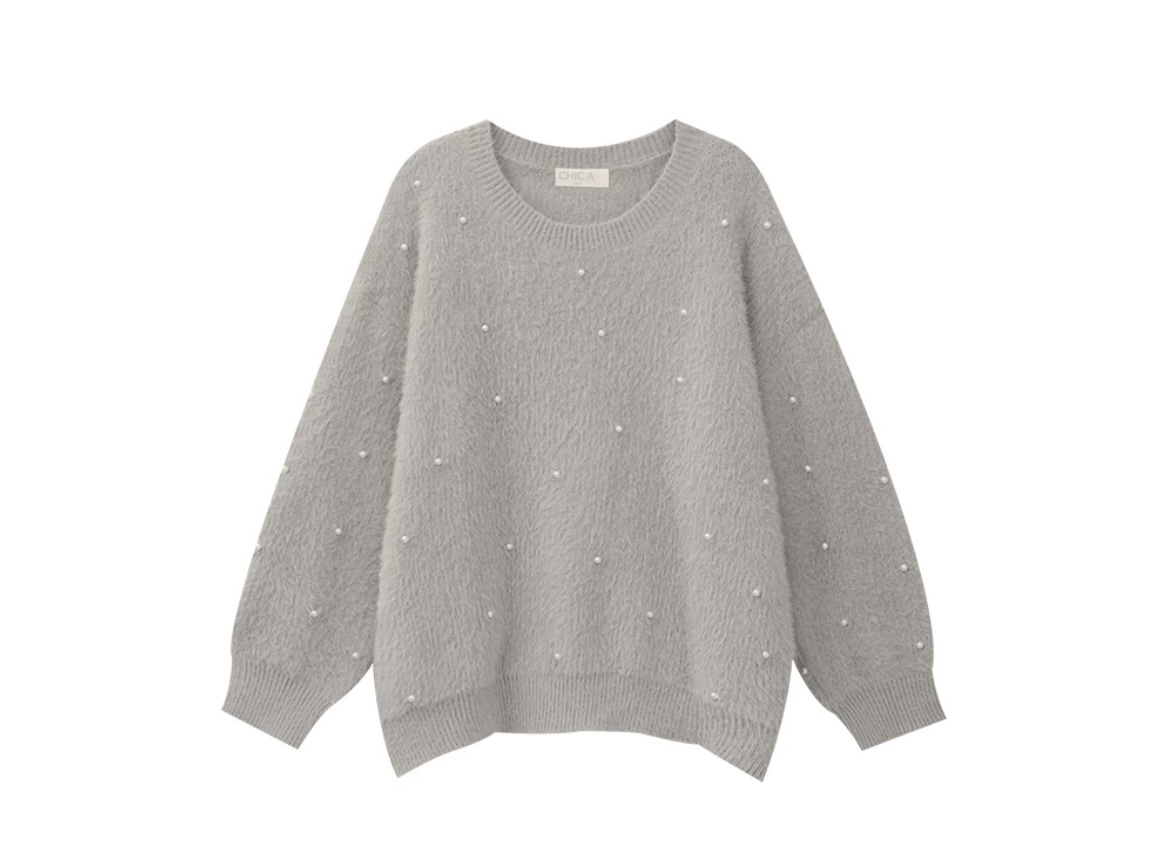 Fluffy Knit Pullover Sweater with Pearl Embellishments