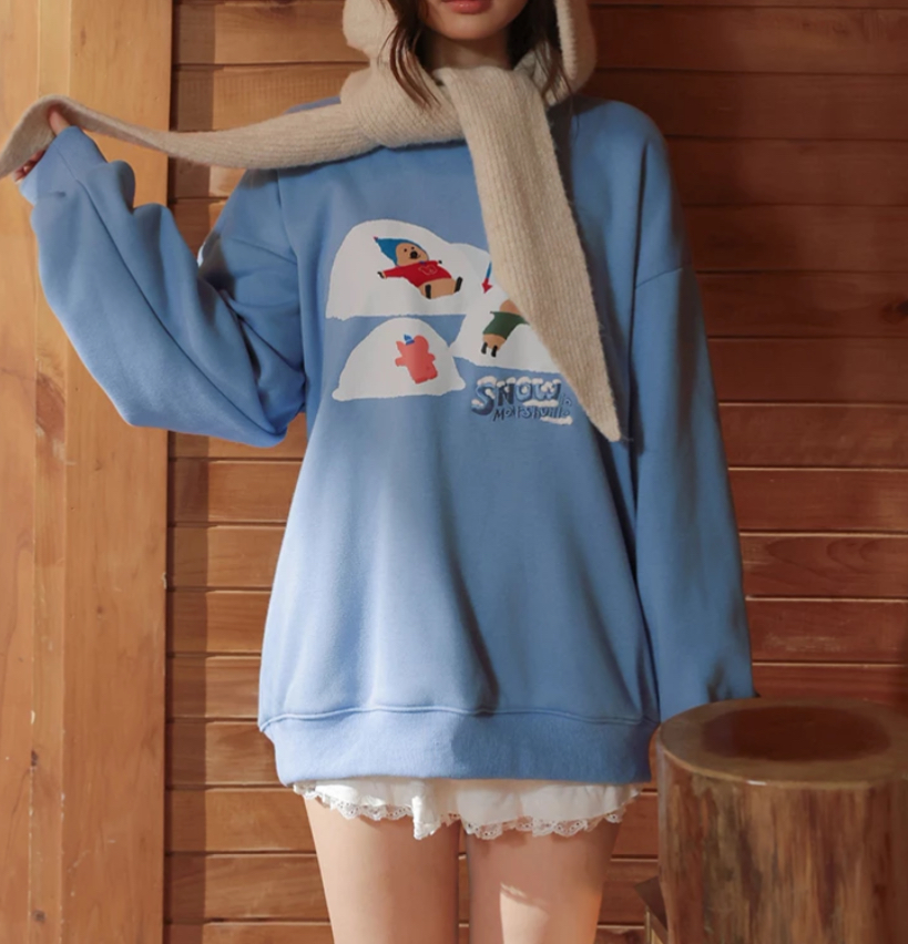 【DINOTAENG】Embroidered Sweatshirt With Inner Fleece
