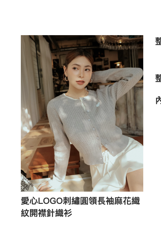 愛心LOGO刺繡圓領長袖麻花織紋開襟針織衫