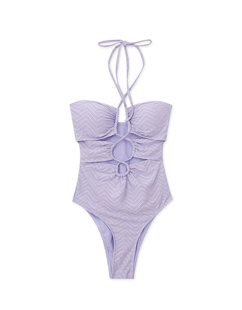 【PUSH IN】Bikini TOP Multi-Way Sparkling Fabric Sexy Hollow Strap One Piece Swimsuit