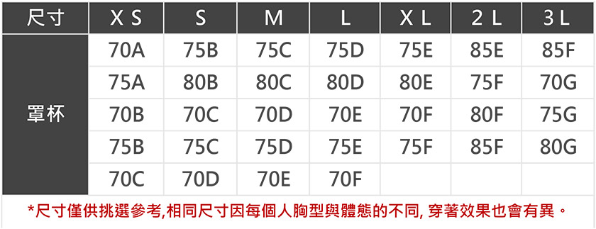 | 版型 | 貼身 | 1 | 2 | 3 | 4 | 5 | 寬鬆 |