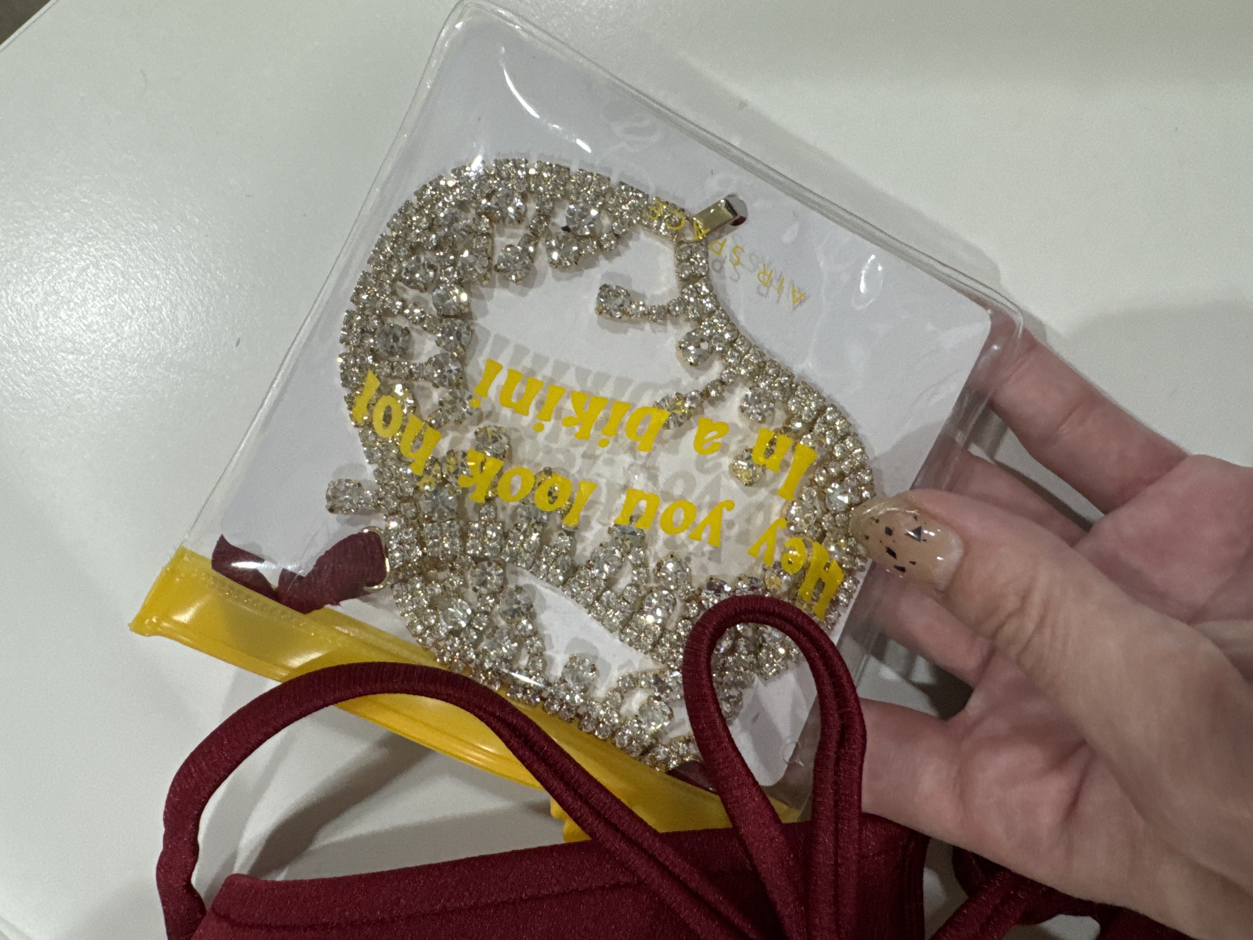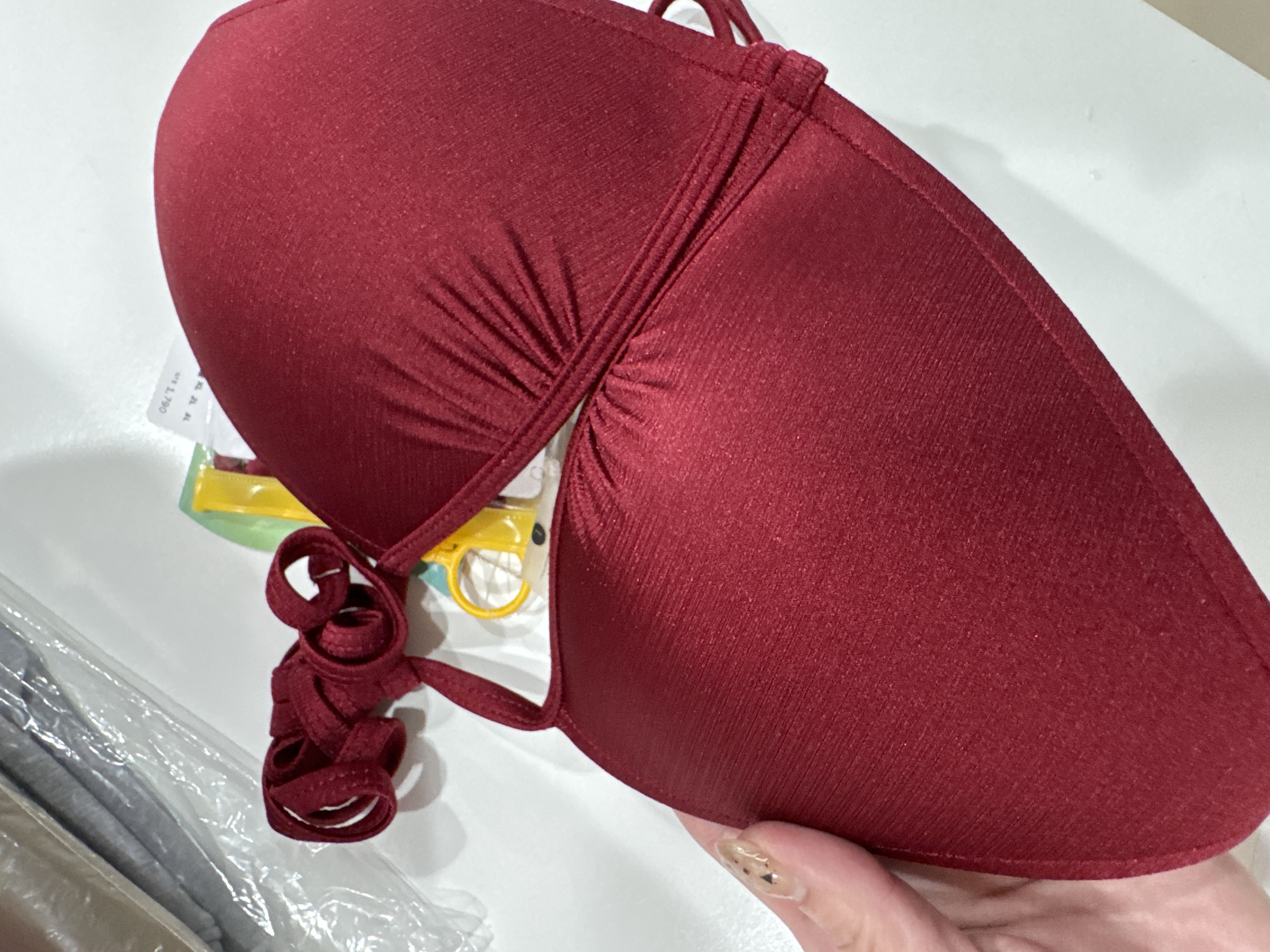 我買大了 紅色真的超級美的 顏色好漂亮 水鑽也很優秀 買了這個牌子那麼多比基尼 因為真的拖胸 不滑 穿起來覺得舒適安全