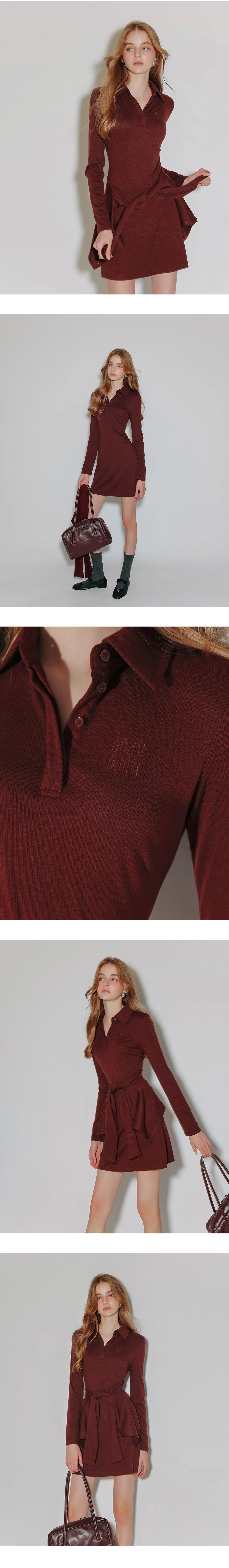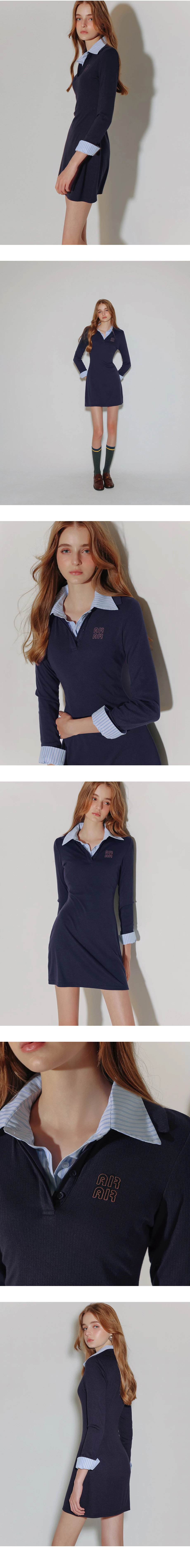 品牌LOGO刺繡翻領排扣長袖合身短洋裝