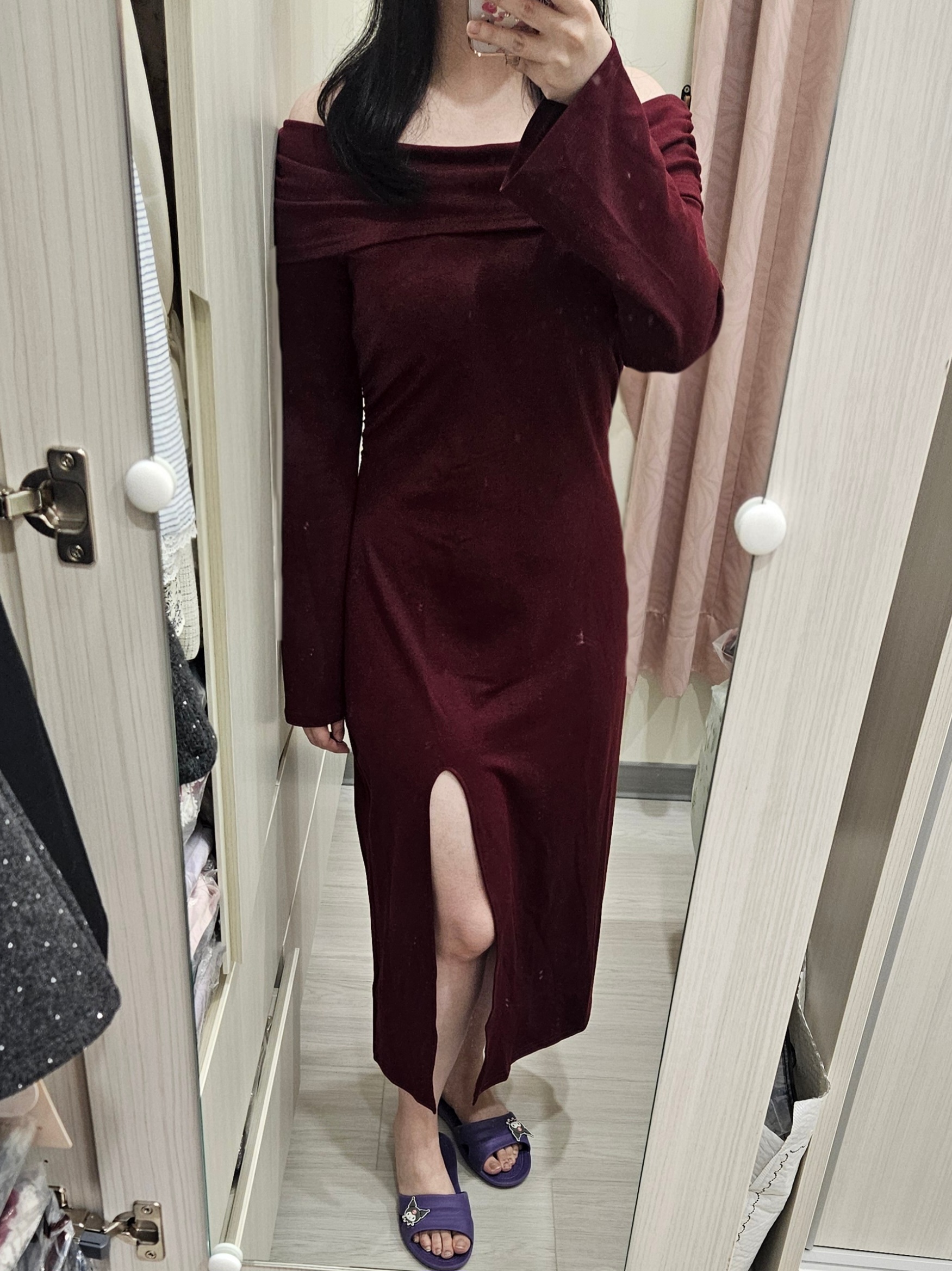 Off Shoulder Foldover Neck Side Slit Bodycon Padded Maxi Dress