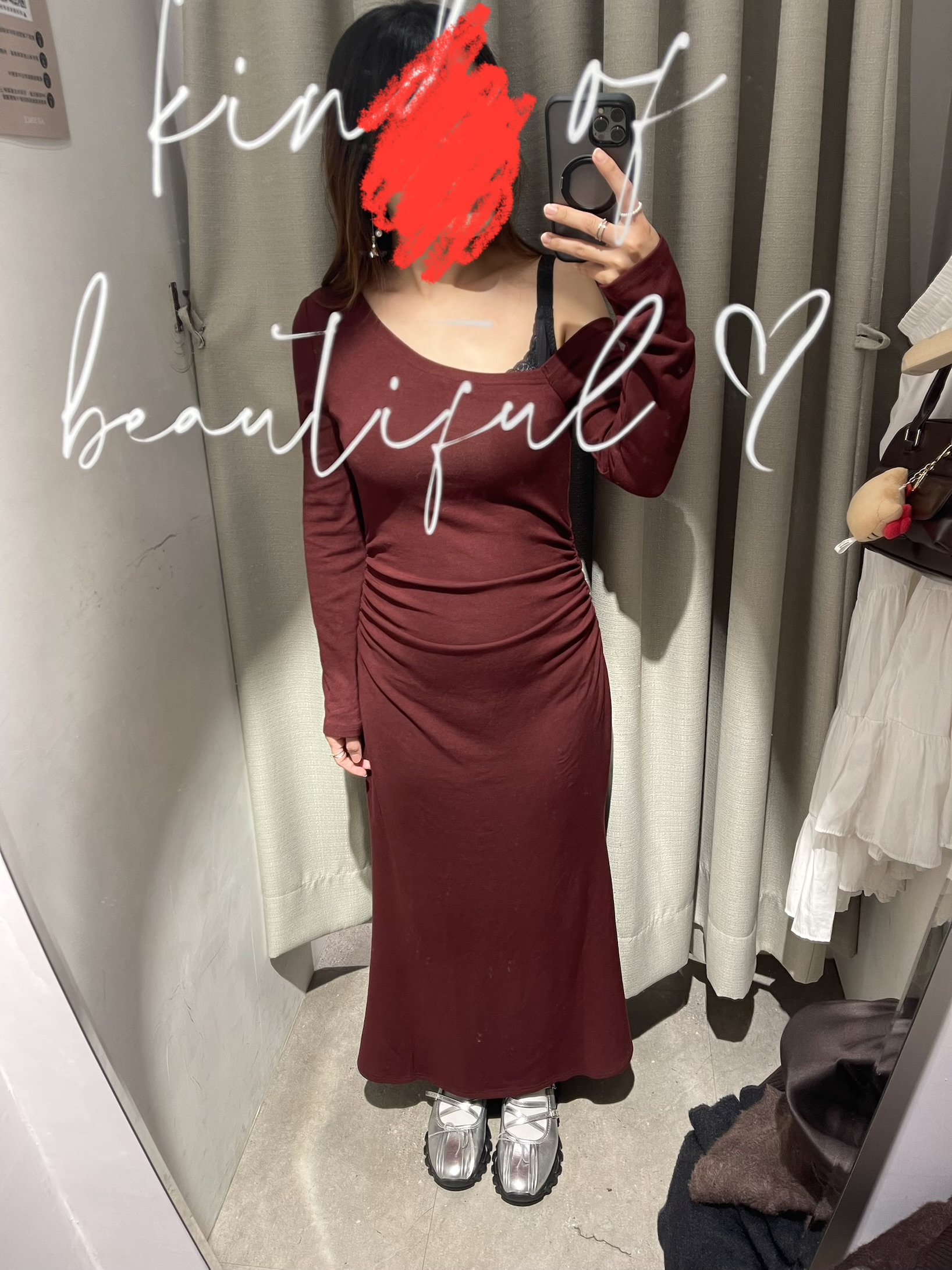 整體非常舒服!而且版型超好看,長度很剛好,斜肩的部分稍微有點空。