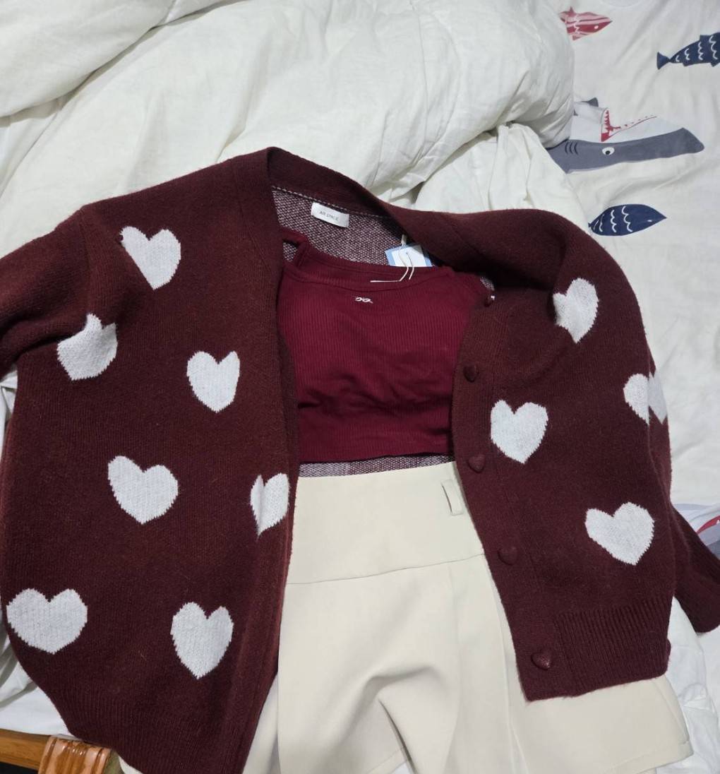 愛心圖案的厚磅外套很好看❤️,又再買一個色❤️🤍 很有愛的衣服要買起來🥰