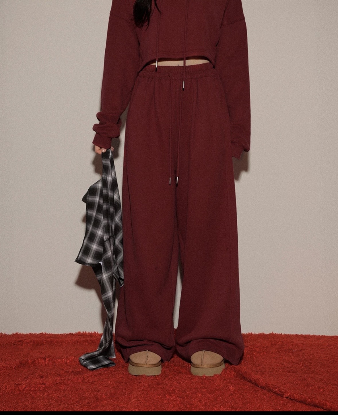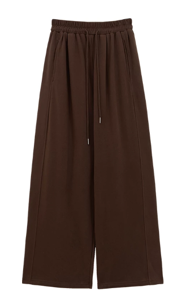 Made with a soft brushed interior, this piece offers warmth and all-day comfort. The elastic waistband is paired with an adjustable drawstring for an easy, flexible fit that allows natural movement. Designed with wide-leg trousers, it helps balance and flatter the lower body while creating a relaxed, effortless look that works just as well for lounging at home as it does for casual outings.