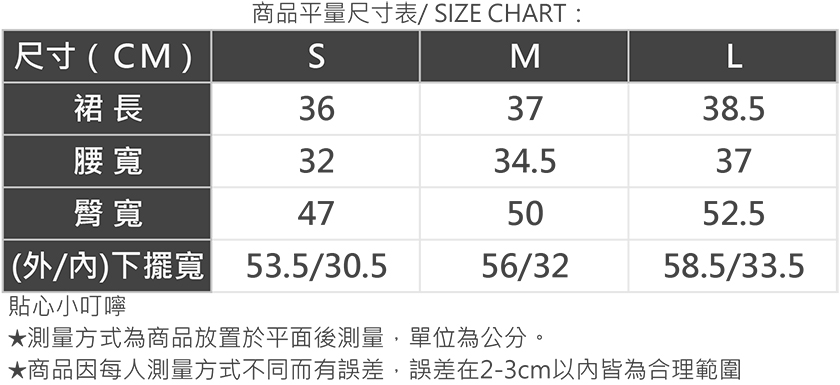 你可以參考下方商品評量尺寸表或是身材測量方式找到最適合你的尺碼,