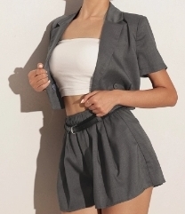Tailored Short Sleeve Cropped Suit Jacket (with Shoulder Pads)