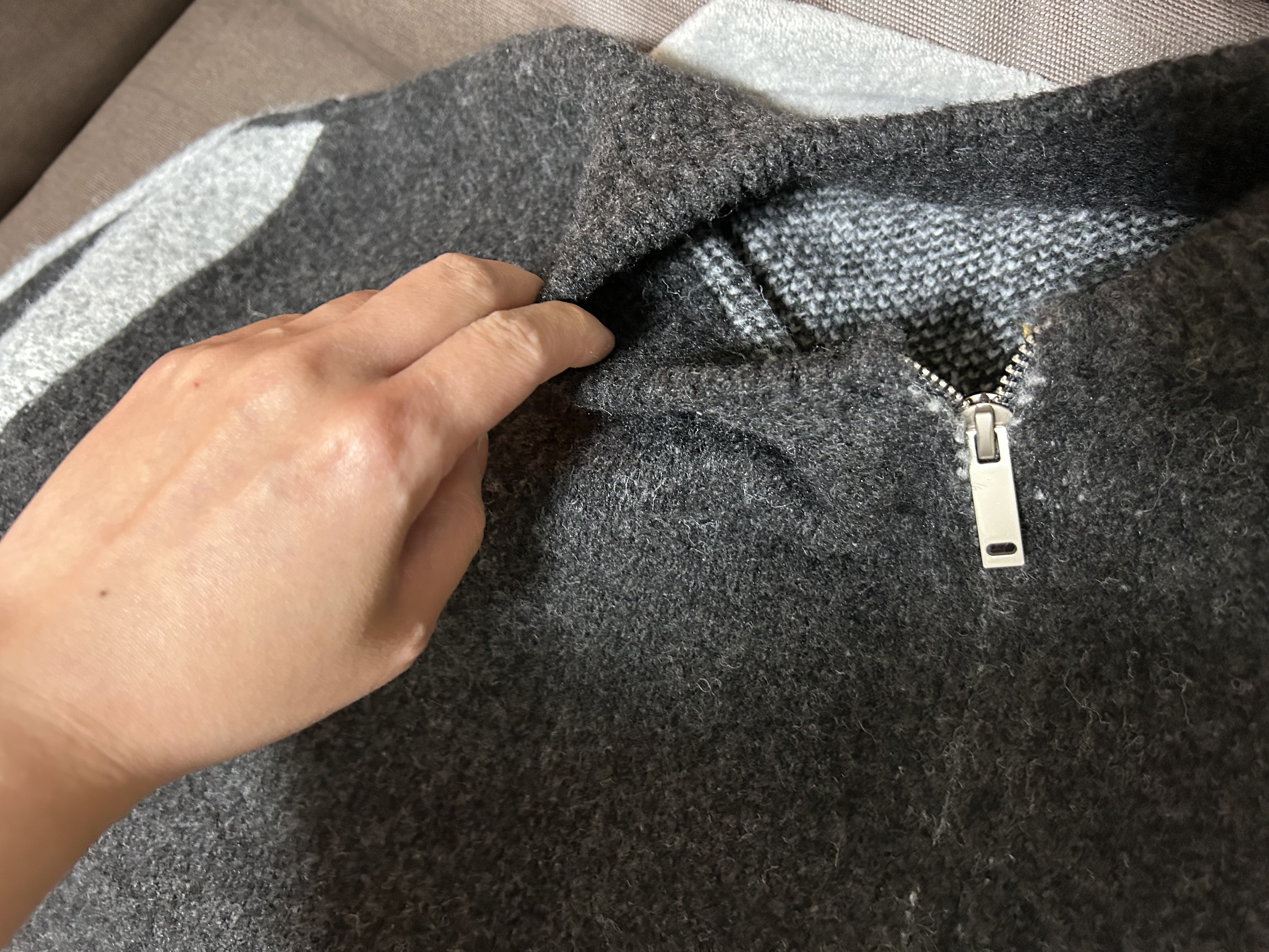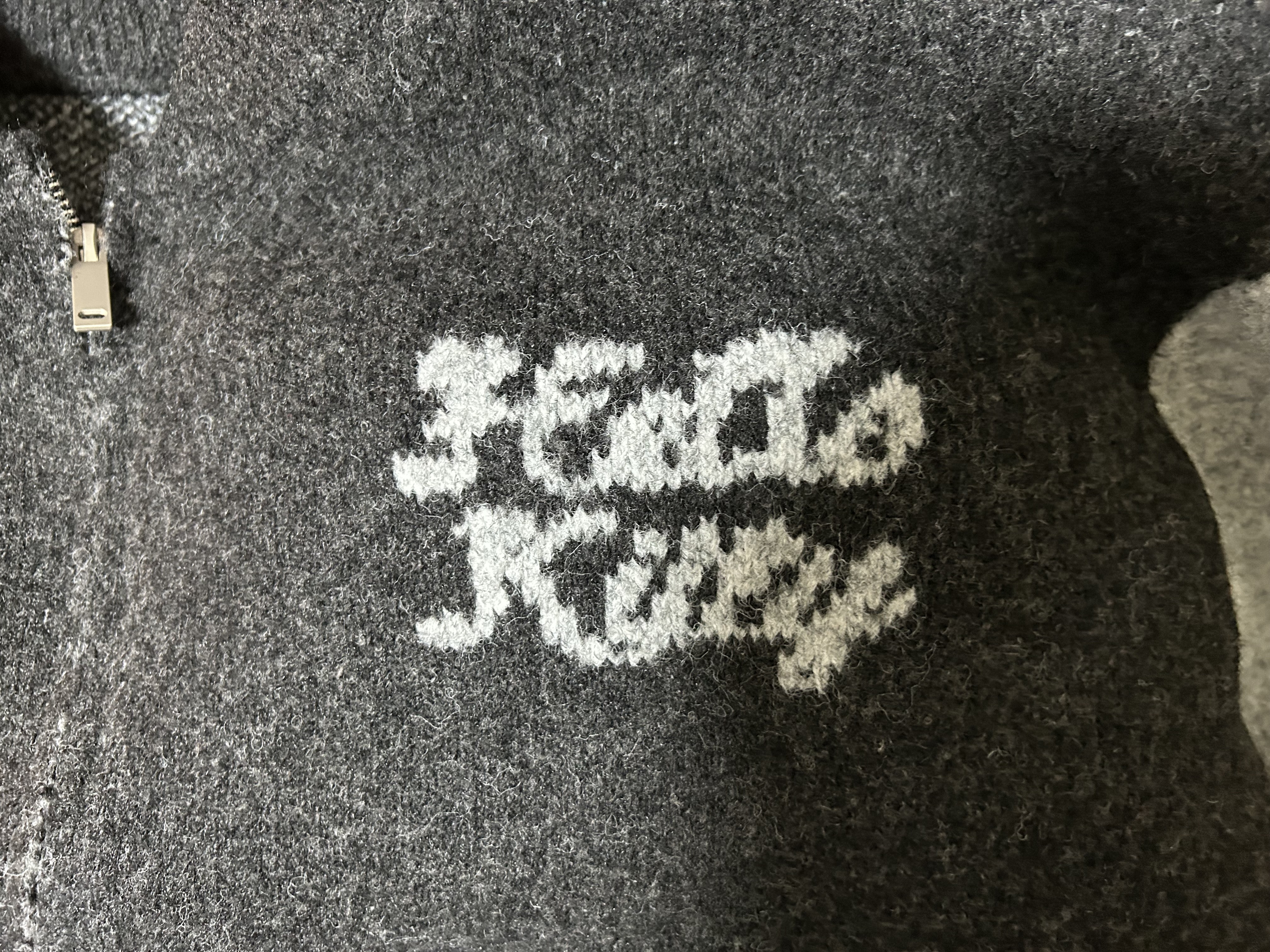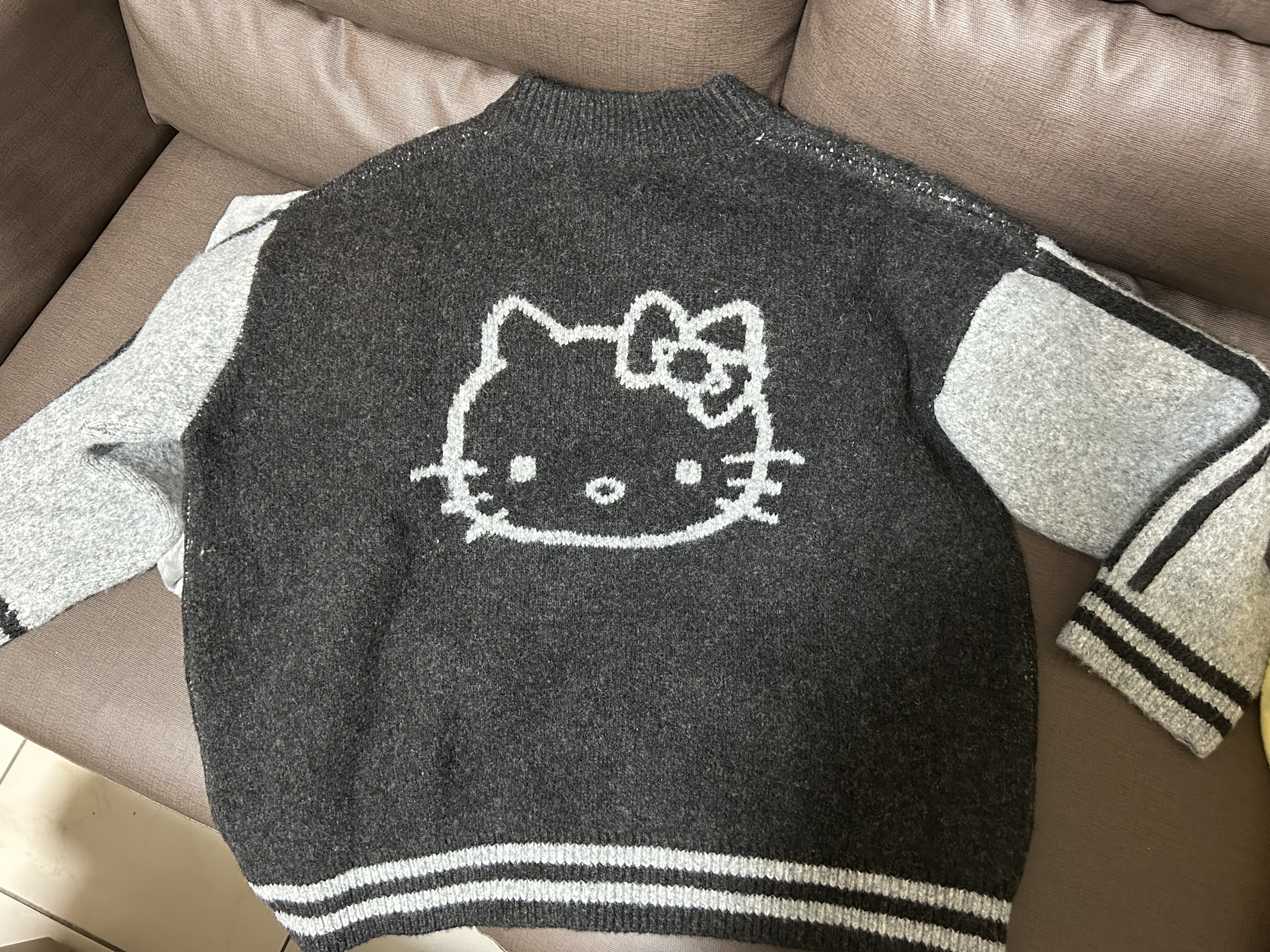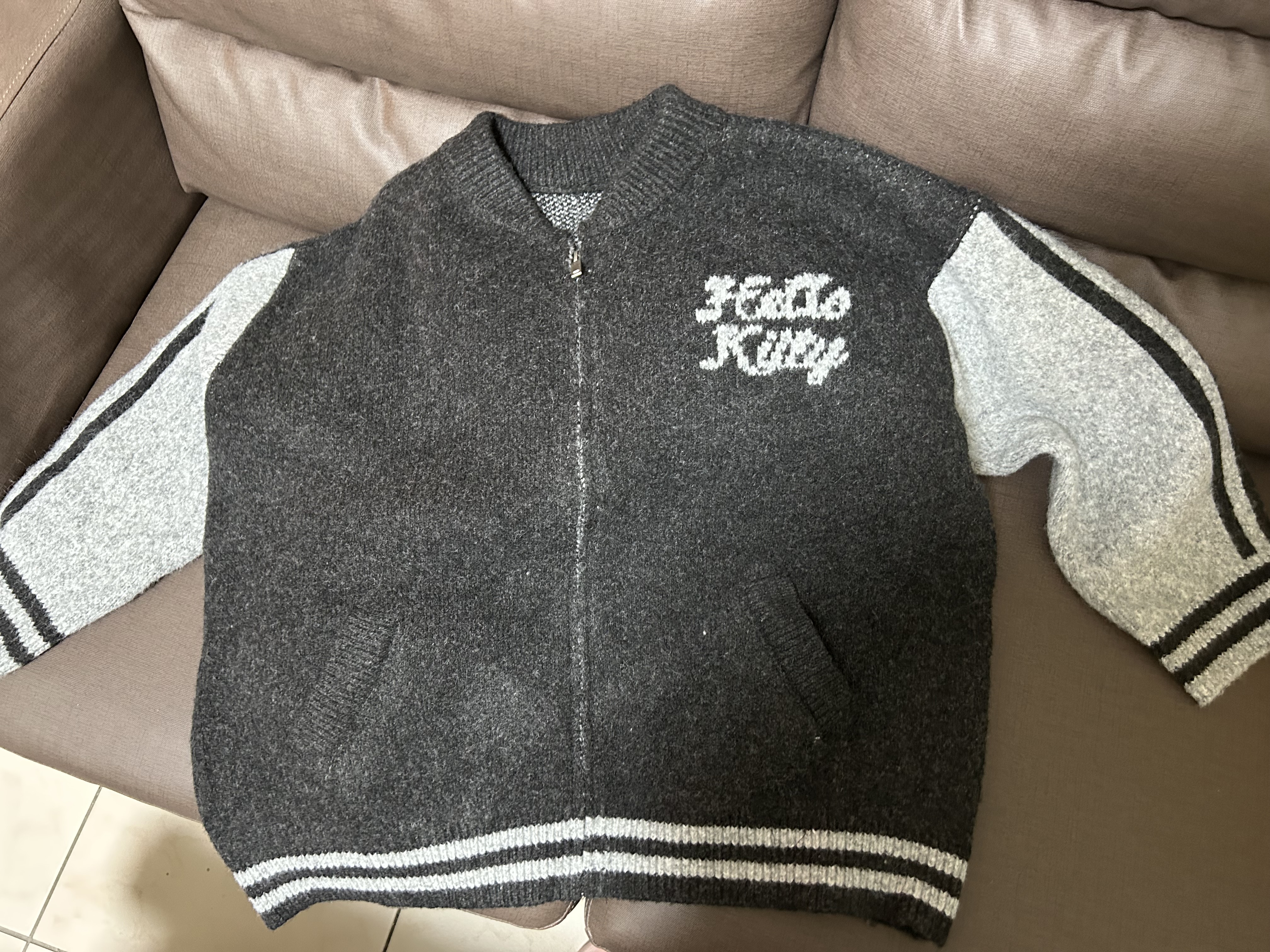 【Hello Kitty Collaboration】Fluffy Contrast Sleeve Knit Zip Up Jacket