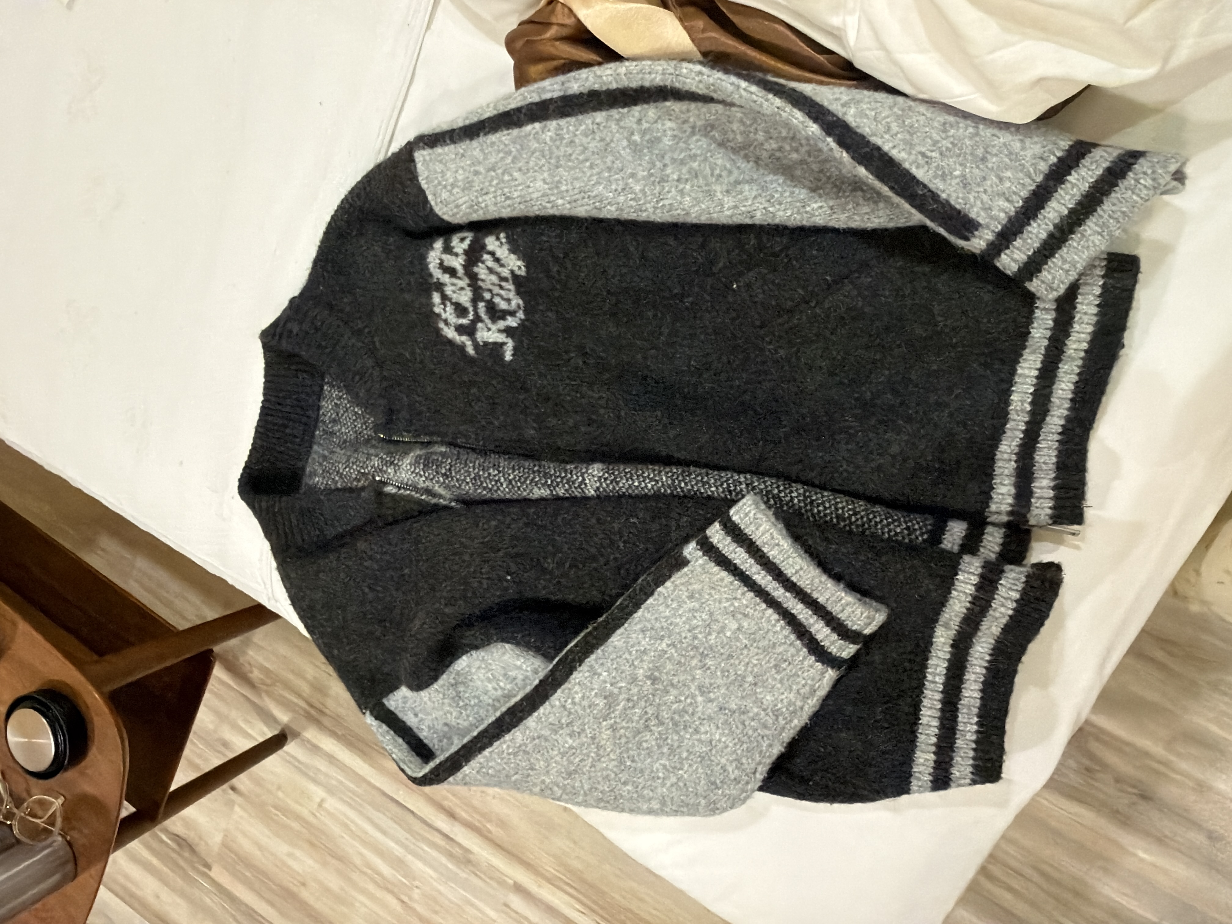 【Hello Kitty Collaboration】【Hello Kitty Collaboration】Fluffy Contrast Sleeve Knit Zip Up Jacket