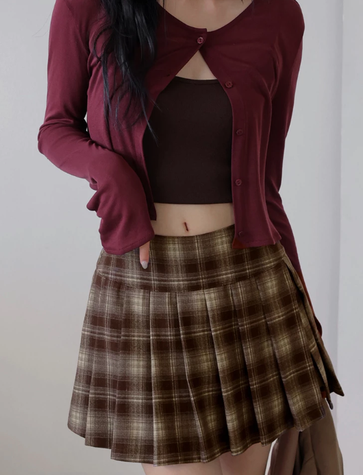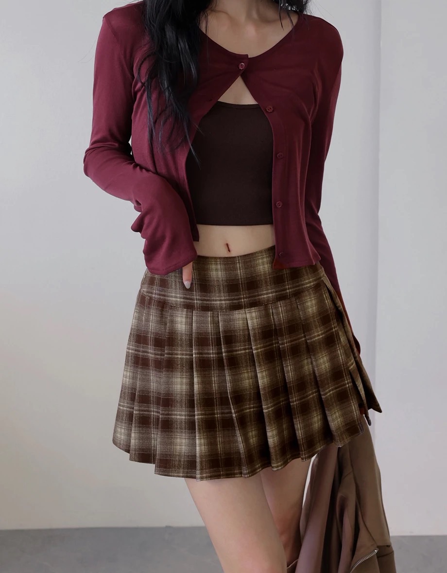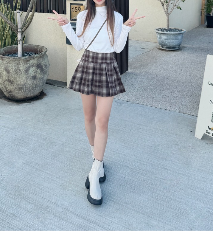 Preppy Style High Waist Pleated Skort (Checkered/Solid)
