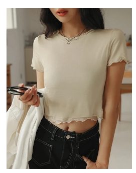 微透肌木耳捲短袖上衣