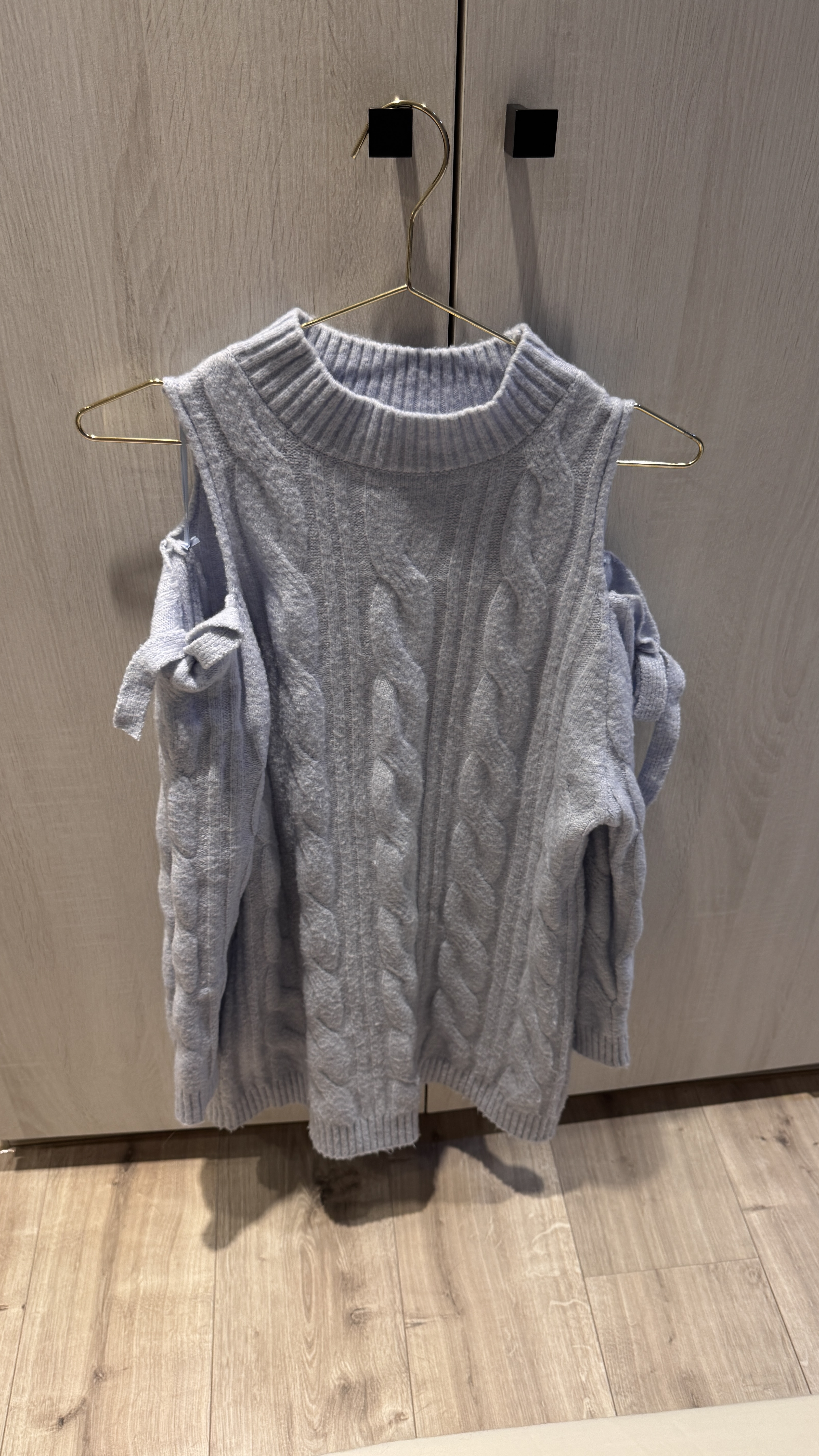 Turtleneck Cold Shoulder Knot Detail Cable Knit Sweater