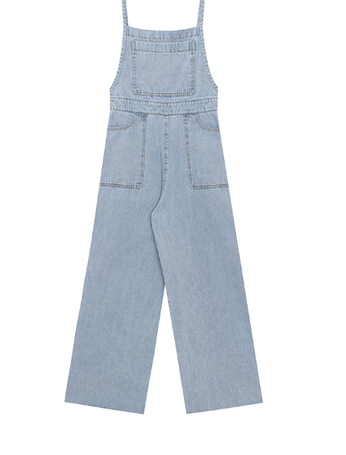 Product Description: Adjustable shoulder straps / Comes with pockets / Back zipper closure / Raw-edge hem at leg openings