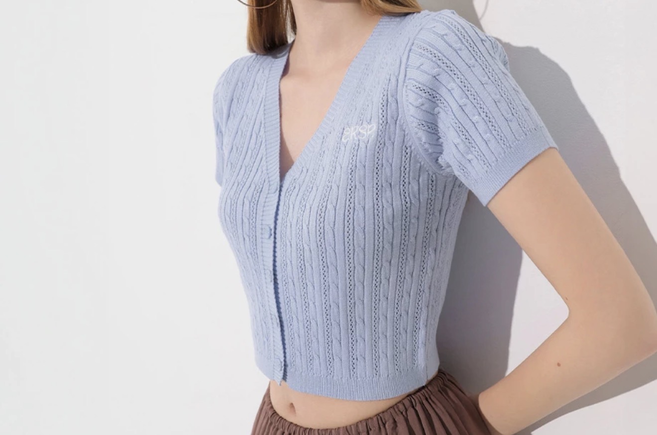 Cable Knit Cropped Cardigan Top with AIR SPACE Logo Embroidered