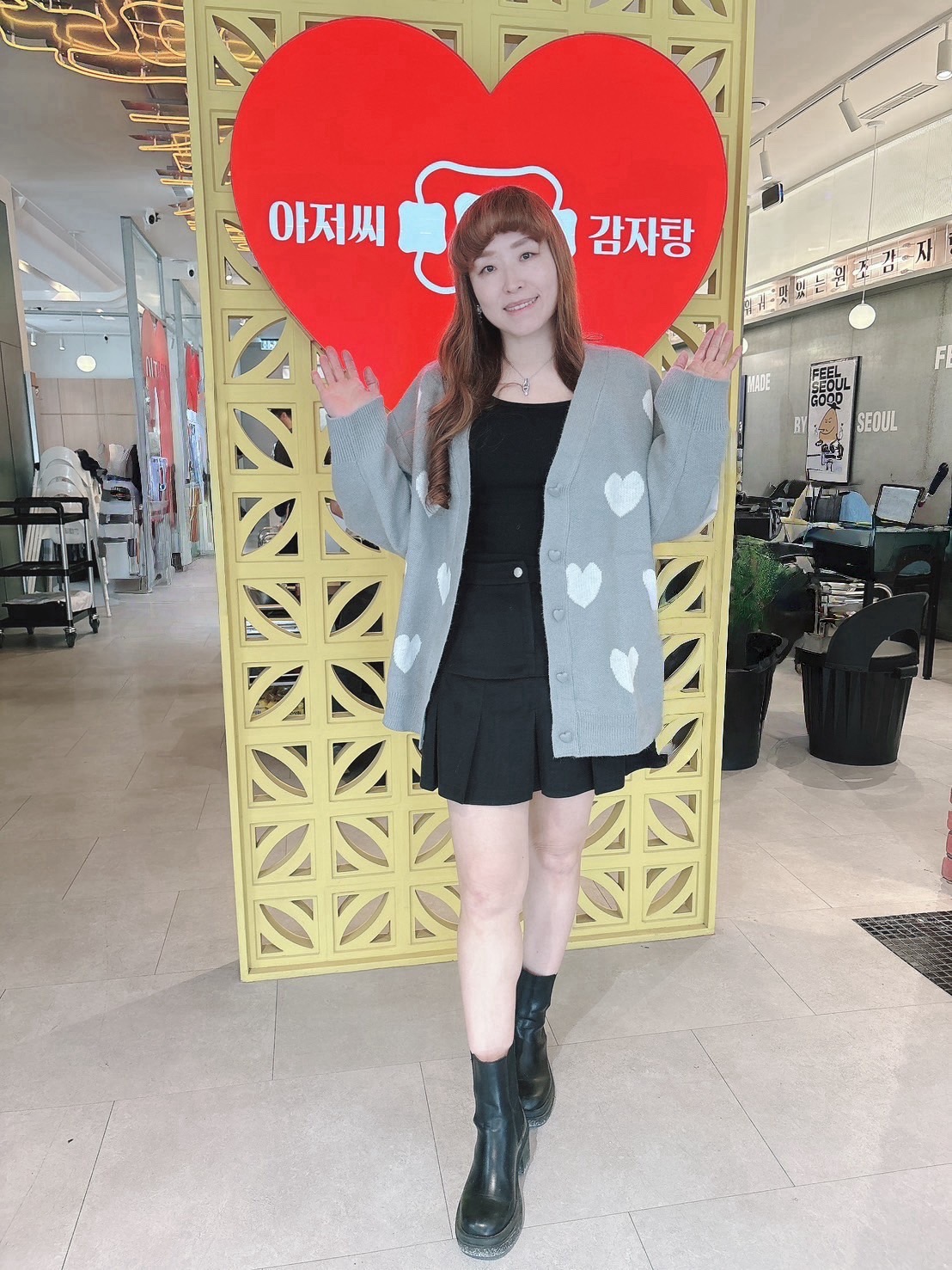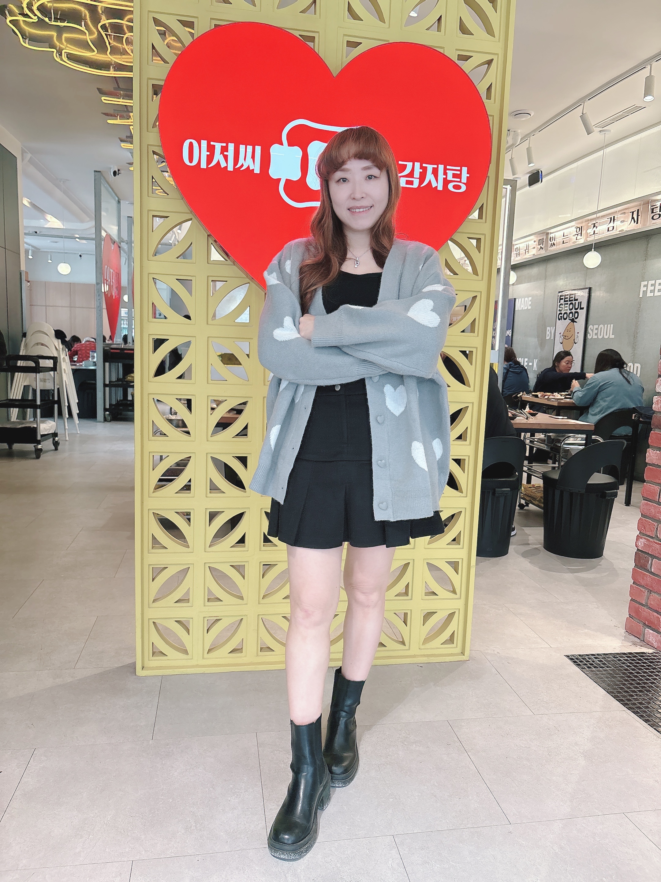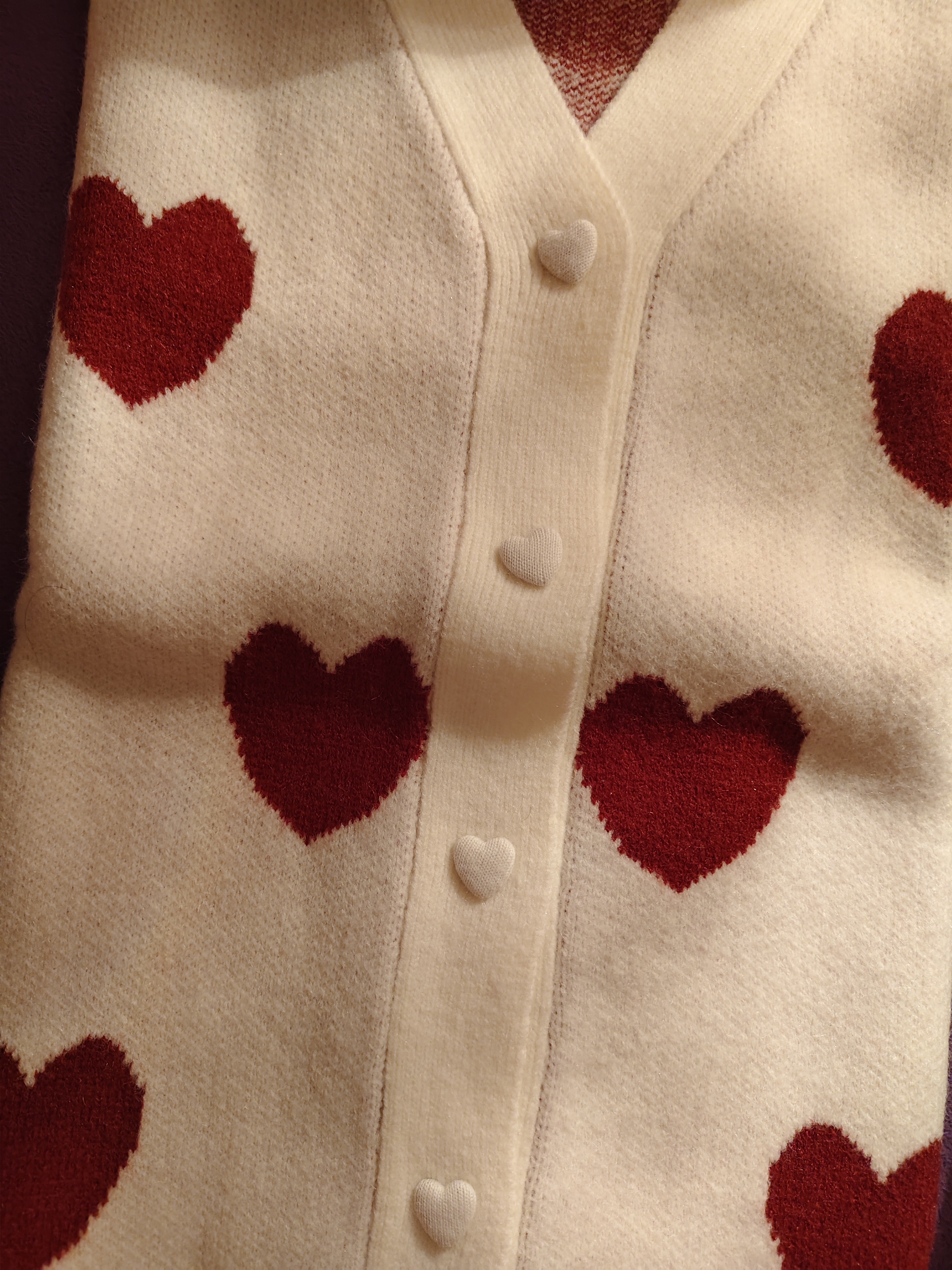 可愛的紅色愛心圖案太喜歡了,愛心扣也很精緻, 很厚的針織外套很保暖