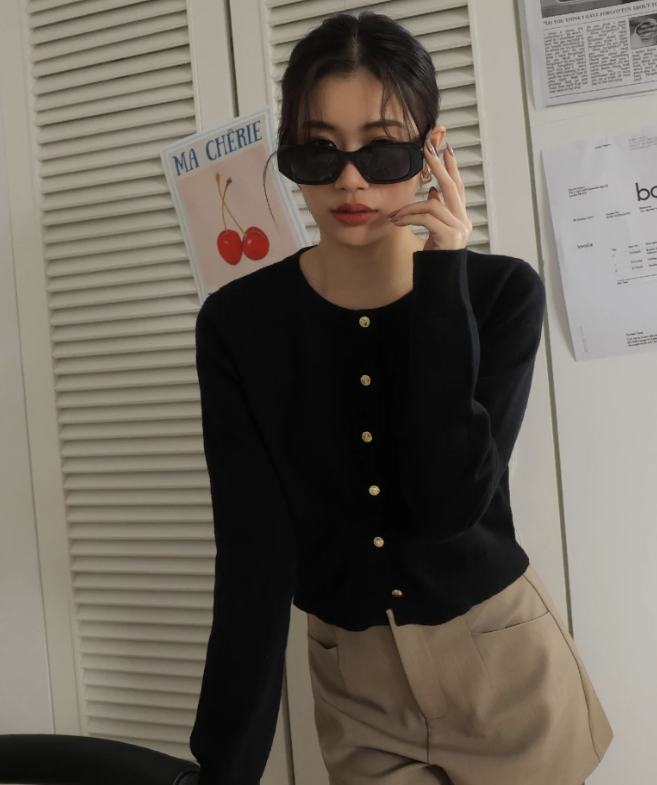 材質很舒服的針織、版型正常,鈕扣是金色的,為了防止刮損,每顆都有包起來,很貼心!