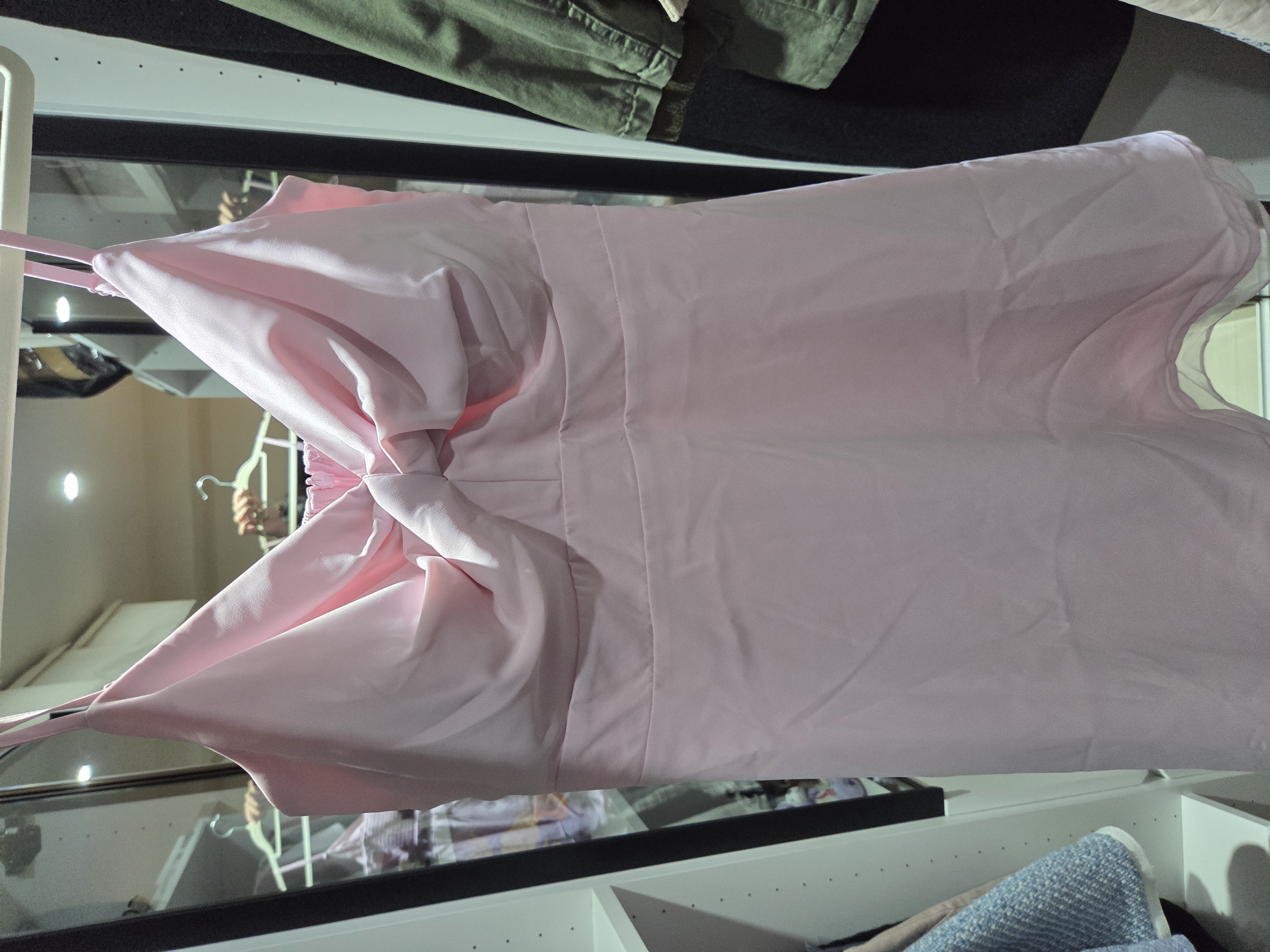 很漂亮的粉色!胸前扭結設計很漂亮!