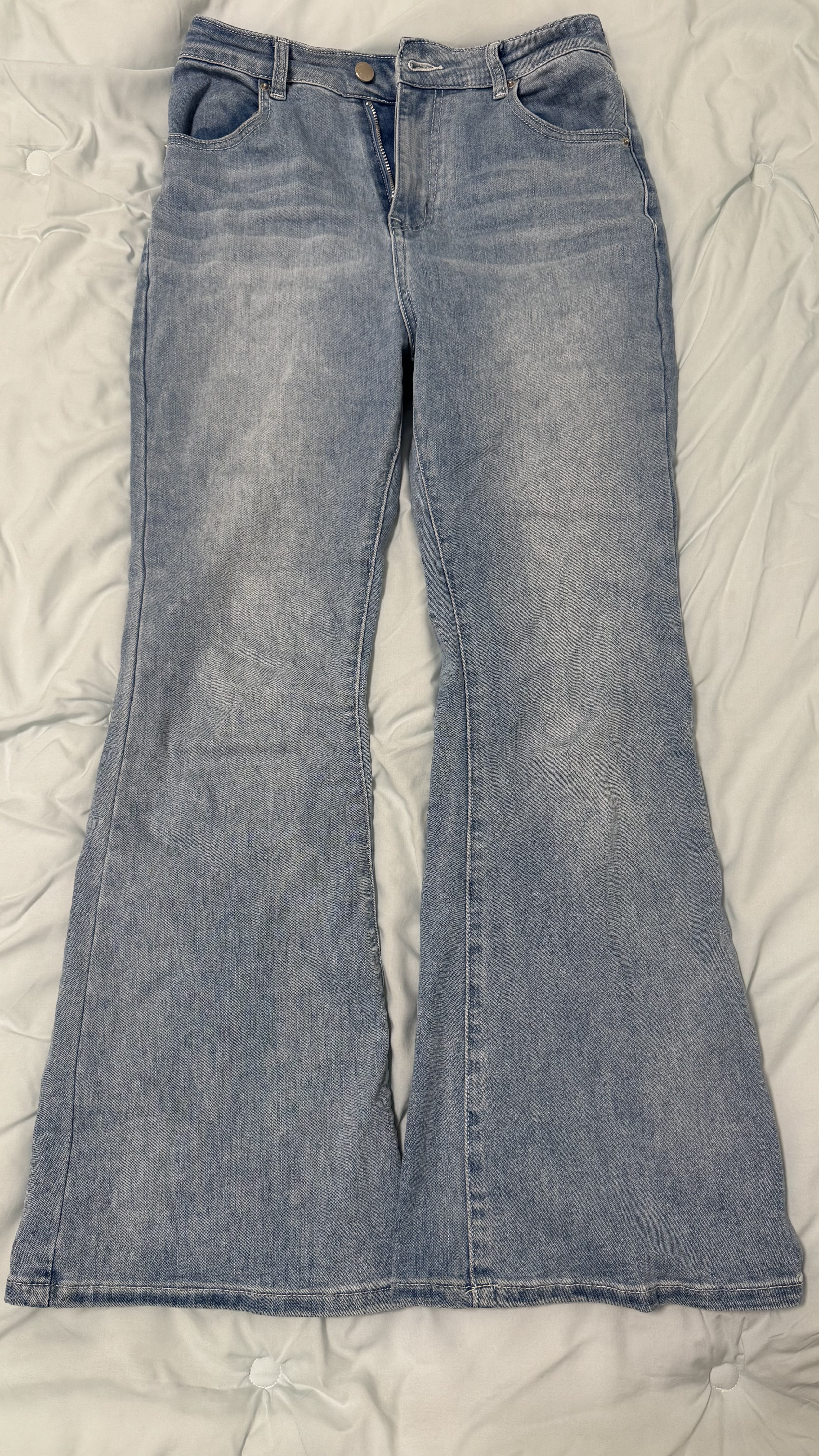 Vintage Wash High Waist Cooling Stretch Jeans Denim Flare Pants