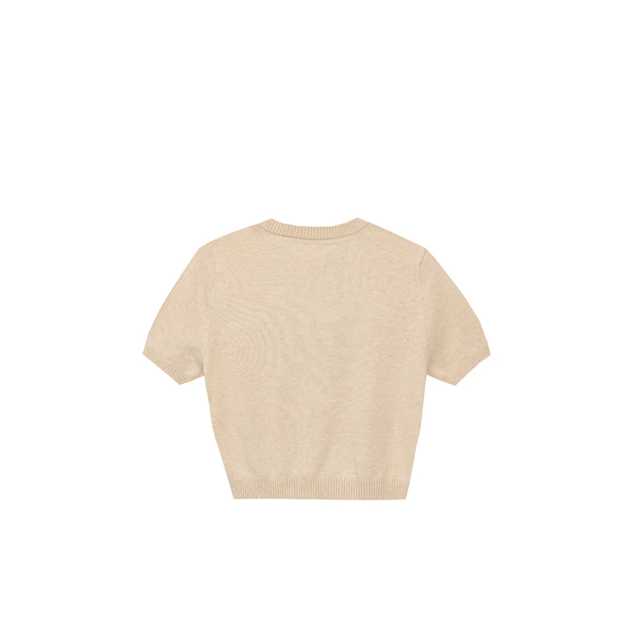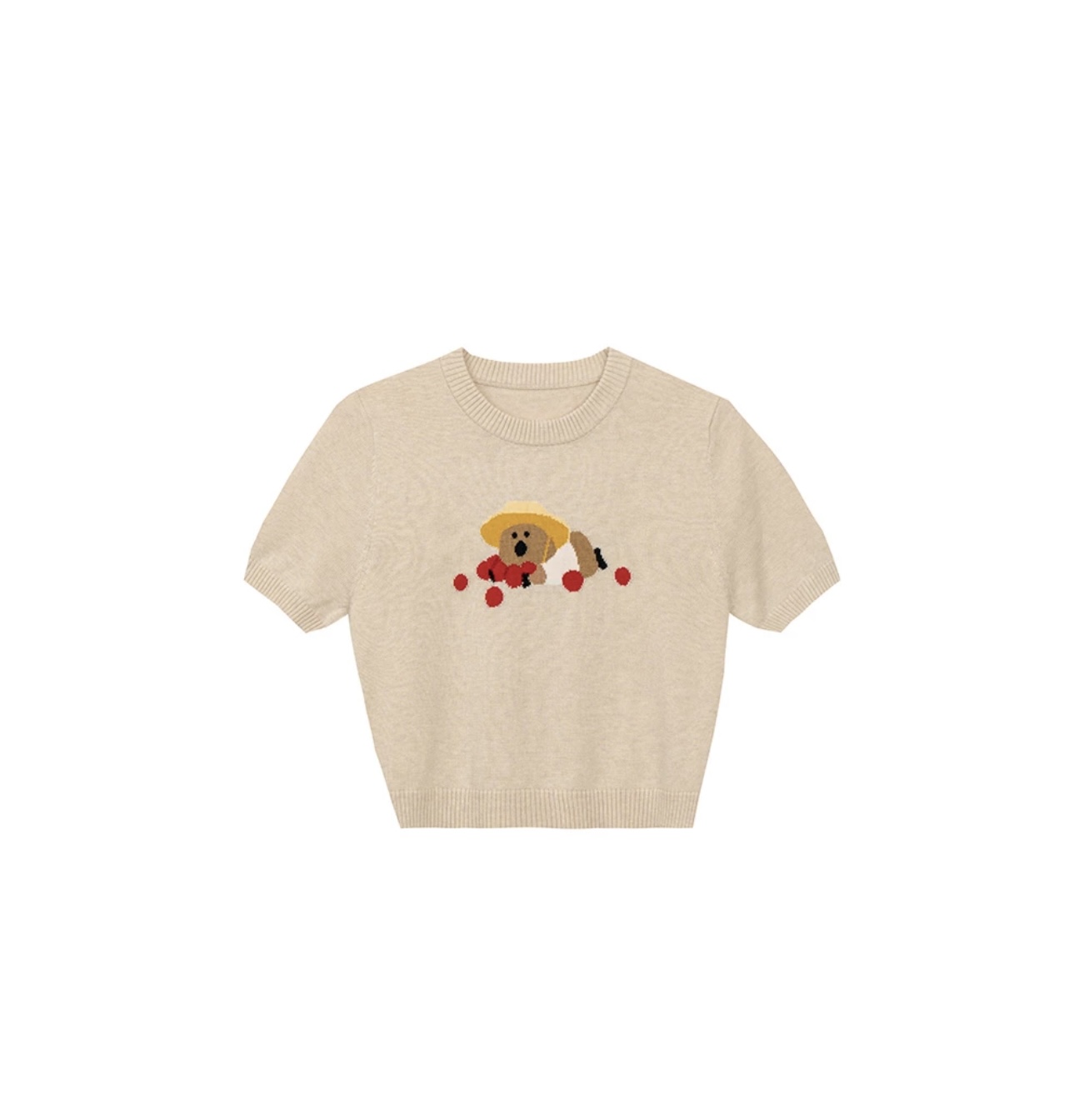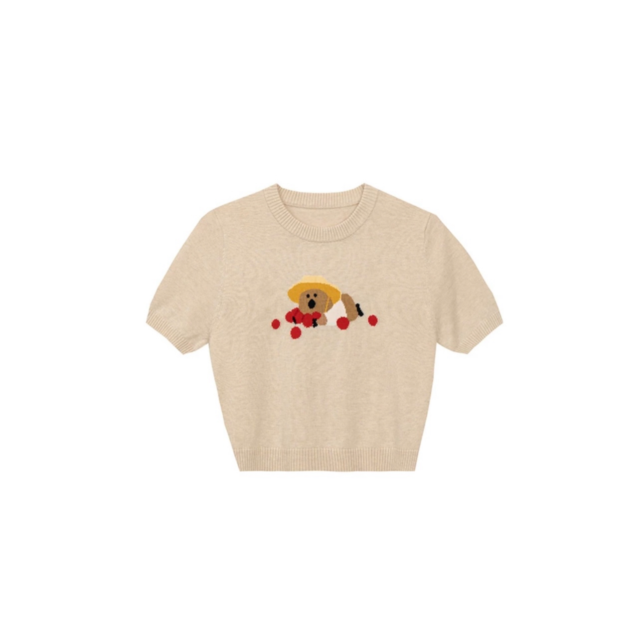 【DINOTAENG】Graphic Short Sleeve Knit Crop Top