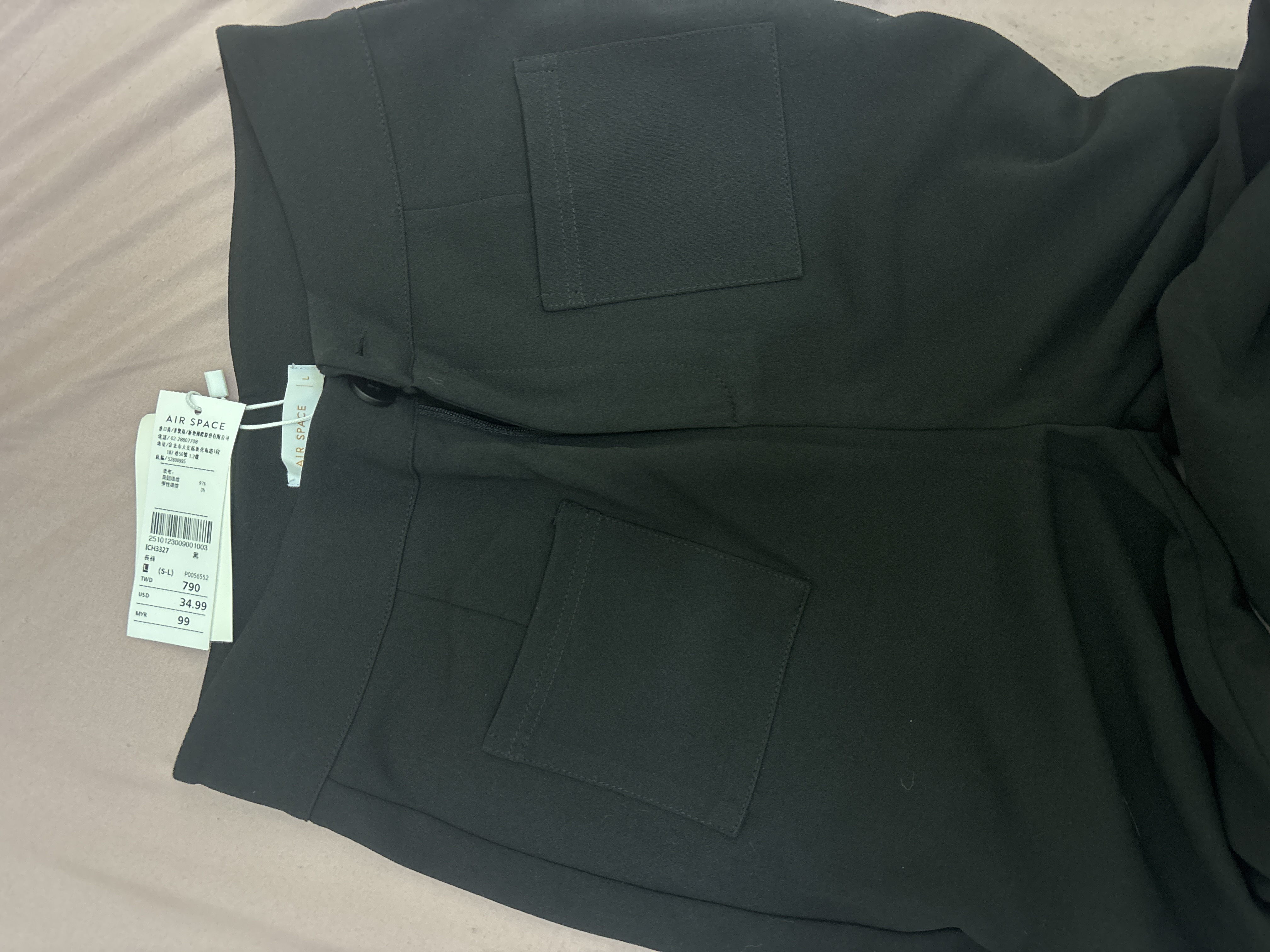 偏寬鬆偏長,但有口袋很方便,褲腳微喇叭有設計感。