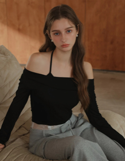 Faux 2 Piece Draped Off Shoulder Long Sleeve Top